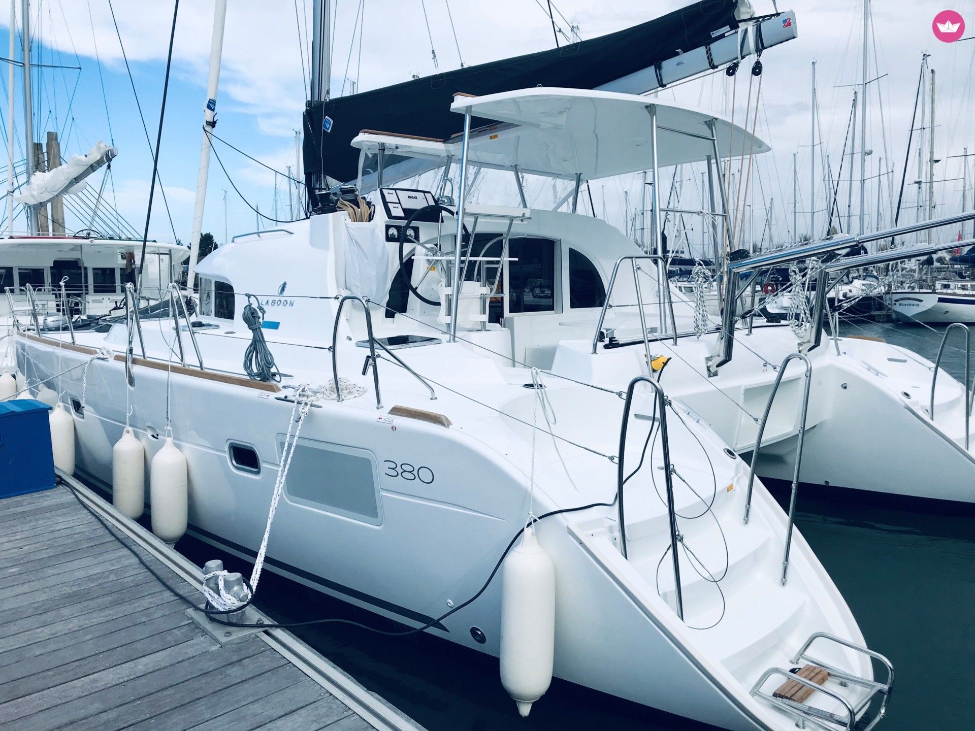 Description of Eric's catamaran , Bonjour, Nous vous proposons de louer ce nouveau LAGOON 380 neuf de 2019!! Il peut être loué jusqu'à 10 personnes puisqu'il possède 4 cabines doubles puis un carré transformable. Vous avez la possibilité de louer ce catamaran avec ou sans skipper! Ce dernier mesure 11,55 mètres de long et 6,53 mètres de large. Vous aurez ainsi tout l'espace nécessaire à votre confort! Venez donc découvrir ce superbe catamaran et naviguez aux alentours de Hyères mais également Cannes, Monaco, l'Italie ou même la Corse! En famille ou entre amis, vous adorerez votre séjour! > TARIFICATION WEEK-END : 2 jours 60 % du tarif semaine, 70 % pour 3 jours, 80 % pour 4 jours et 90 % pour 5 jours. * Hors période d’été (nous consulter) > TARIFICATION SEMAINE du lundi au vendredi : 2 jours 50 % du tarif semaine, 60 % pour 3 jours, 70 % pour 4 jours et 80 % pour 5 jours. > JOURNEE : à partir de 800 € **** Inclus : - Consommables à bord (gaz et piles) - Annexe semi-rigide 2,90m Highfield - Torchon et tapis de douche Options : - Skipper / Formateur : 220€ / jour - Paddle : 145€ / semaine - Canne à pêche : 65€/semaine - Gennaker : 250€/semaine (caution supp de 1500€) - Moteur HB 5ch : 60€/ semaine - Literie : 40€ / cabine - Serviettes de toilettes (2) : 15€/pers - Nuitée à bord la veille : 150€ Forfait Obligatoire : Nettoyage 220€ Caution par CB ou chèque : 5000€ sans skipper, 800€ avec skipper. REGLEMENT : Acompte de 30 % à la réservation puis solde un mois avant votre départ. EMBARQUEMENT / DEBARQUEMENT : 9h00 / 14h30 (vide de tout effet personnel) Pour de plus amples informations, n'hésitez pas à nous contacter via la messagerie de Catamaran Yacht Charter. Cordialement.