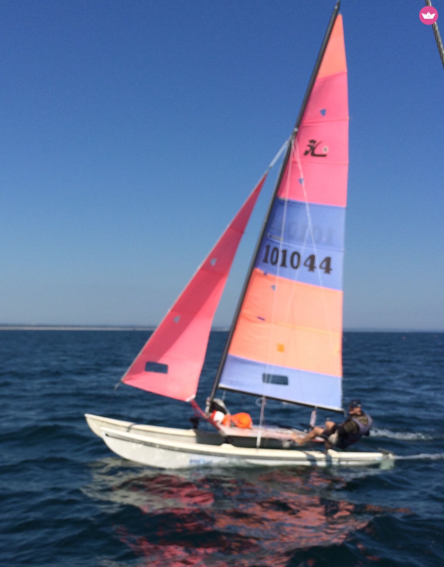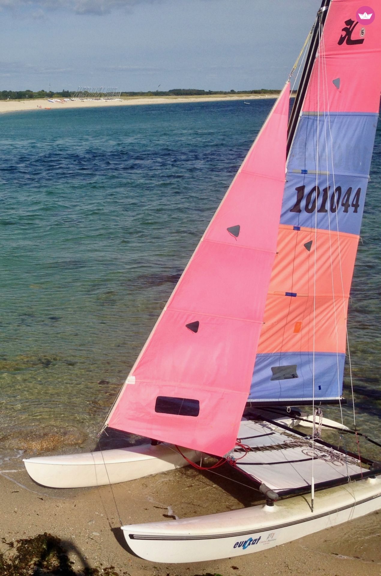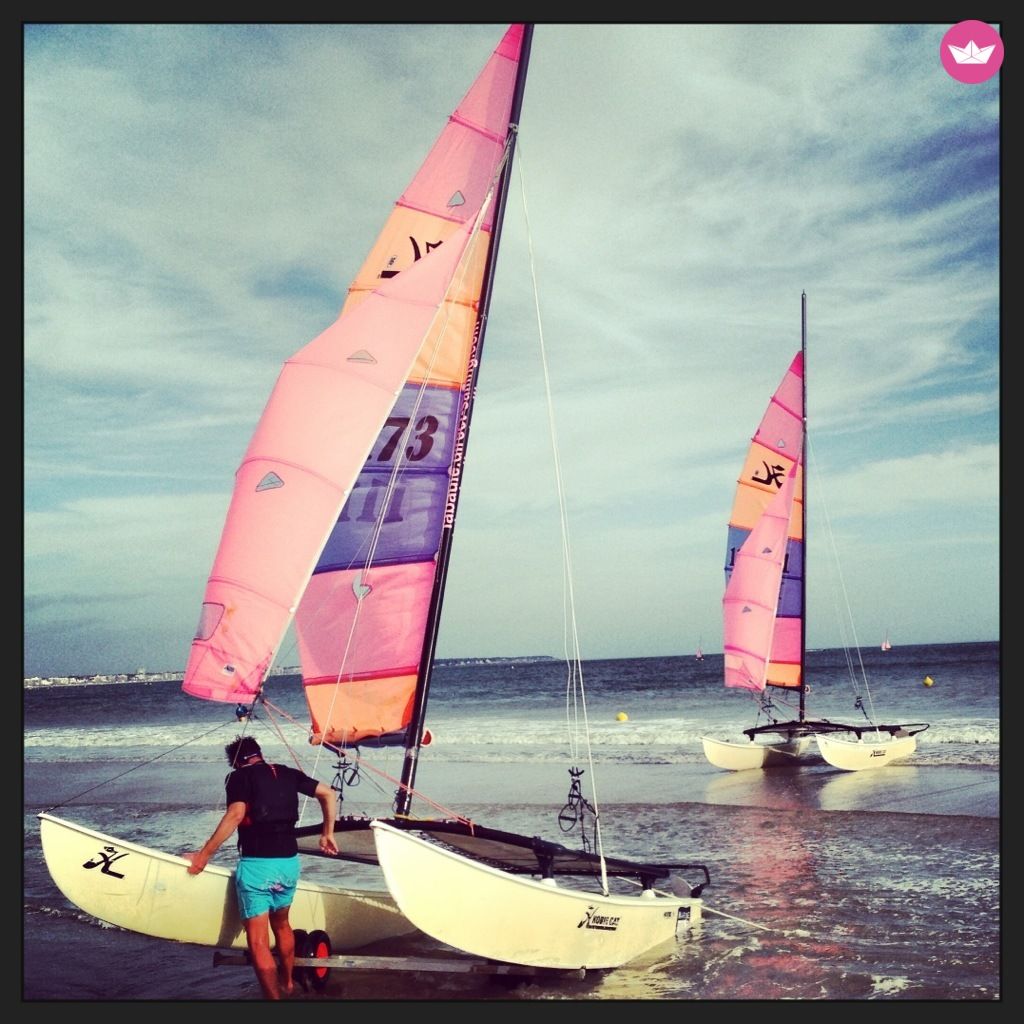 Description of Jean Bertrand's catamaran , Hobie Cat 16 Idéal pour profiter cet été sur les plages du Finistère Sud. Je loue mon HC 16 pour une utilisation loisir ou sport. Fun et sportif quelques soit le temps. Tout équipé (version club = sans spi) et très bien entretenu Bateau gréé en 10 minutes (les voiles roulés sur la bôme tiennent dans une voiture ou sur des barres de toit - safran et accastillage restent à poste) Les plus : - deux ceintures de trapèzes - un stick fibre - accessoires de réparation - Remorque de route (attention il est nécessaire de démâter) si vous êtes à proximité mieux vaut le convoyer par la mer il est très rapide Hobie Cat 16, un catamaran de plage légendaire et indémodable : Le Hobie 16 a révolutionné la navigation en multicoque. Il a été lancé sur les plages de Californie du Sud en 1970 et la navigation à voile en a été immédiatement transformée. Le Hobie 16 a amené vers le sport des légions de marins aimant la vitesse. Les coques asymétriques légères en fibre de verre permettent au bateau de s’élever et sa plateforme en double trapèze vous laisse vous et les membres de votre équipage exploiter son pouvoir absolu. Maintenant, 45 ans et plus de 100 000 bateaux plus tard, le Hobie 16 occupe une place très convoitée dans le « Hall of Fame » des voiliers et offre une navigation à voile tout sourire et des courses de niveau mondial. Essayez-le et vous comprendrez cet engouement obsessionnel ! Caractéristiques : • Équipiers: 2-3 (2 trapèzes) • Longueur: 5.11 m • Largeur: 2.41 m • Capacité: 240 kg • Poids: 155 kg • Hauteur de Mât: 8.07 m • Surface de grand-voile: 13.77 m² Dacron • Surface du Foc: 5.12 m² Dacron • Construction de la coque: Sandwich Polyester • Homologation CE: Catégorie C • Couleur : rose et bleu (voir photos) Attention : il ne s'agit d'un cata de sport et pas d'un jeu de plage : si vous débuter n'hésitez pas à vous tourner plutôt vers un Centre Nautique ou une École Française de Voile. Il est indispensable de savoir gréer, resaler le bateau et naviguer en bon marin (références exigées) Références : Site Internet Hobie Cat France