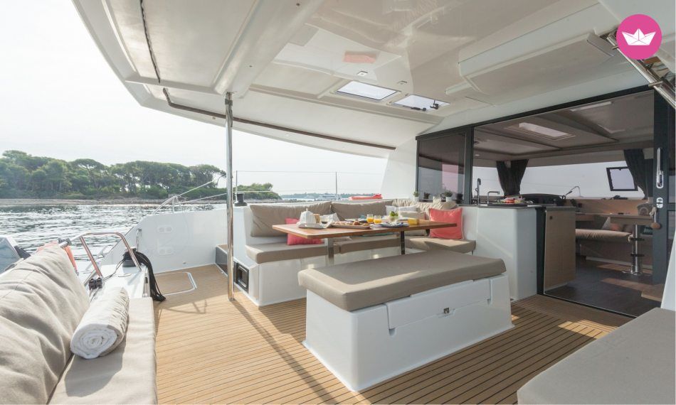 Description of Courtney's catamaran Hello, This catamaran Hélia 44 fro 2018 is a great boat to set sail in the Caribbean. Based in the British Virgin Island in Nanny Cay Marina. The new flagship from Fontaine Pajot has been created with a large living space and many windows to let the light of the sun inside. This version comes with 3 cabins and 3 heads. A fully equipped kitchen with a fridge and freezer big enough to store all your supplies for your trip. A large space outside to enjoy the sunbaths and take a nap under the Caribbean Sun. Under the hard bimini, a dining table and seats to enjoy a unique dining experience. The boat is available for 5 days minimum, feel free to ask for a quotation. You can charter the boat with or without skipper *** OPTIONS *** Skipper : 185$/day Instructor : 210$/day Cook : 160$/day (food not included) Watertoys : SUP / Kayak / Kiteboard / Windsurf / Scuba Snorkel : Upon Request *** EXTRA COSTS *** Fuel Water Groceries and Beverages Feel free to contact us through Catamaran Yacht Charter chat to discuss about your charter project. I will happily answer all your questions ! See you soon in Tortola !