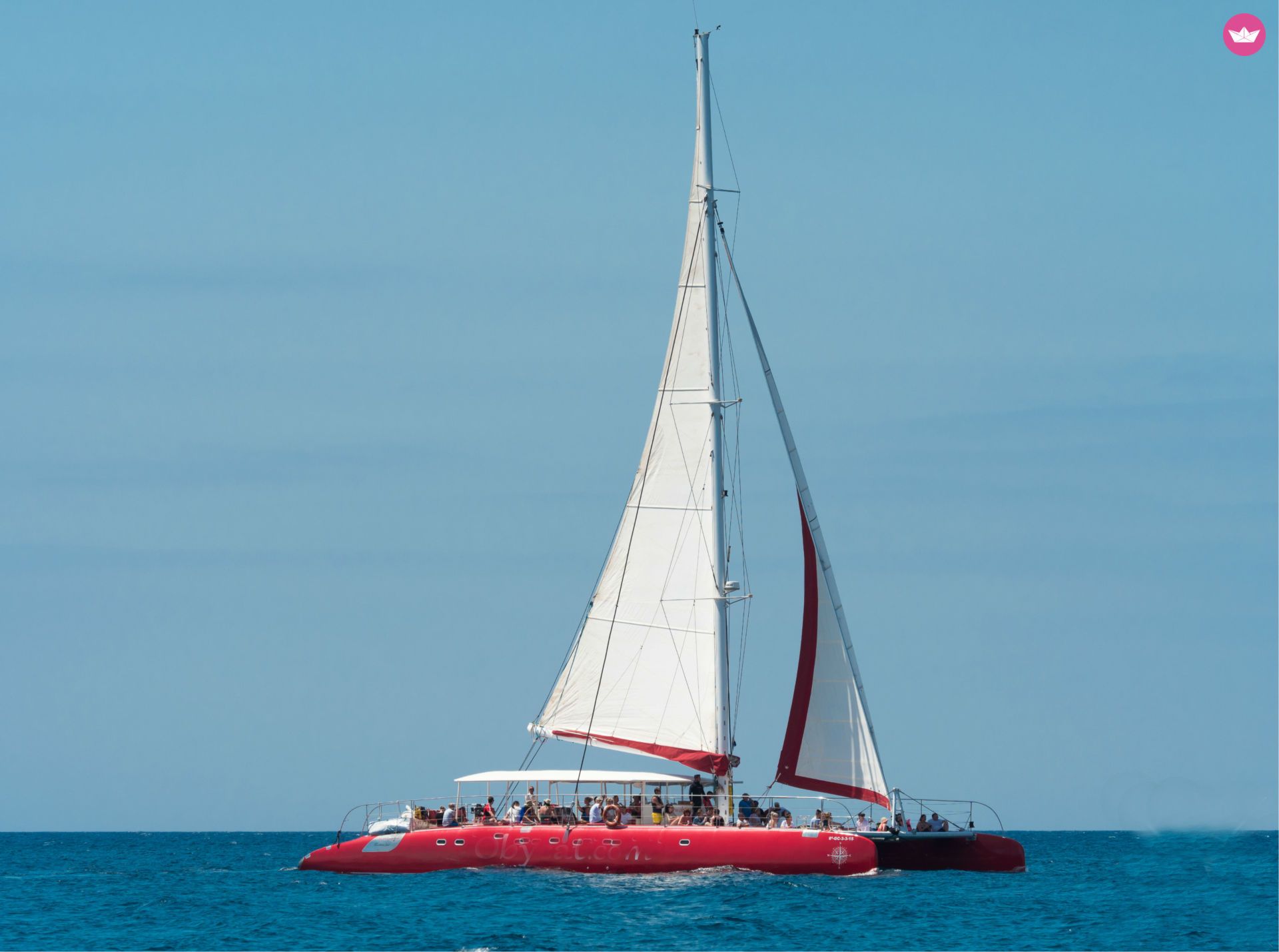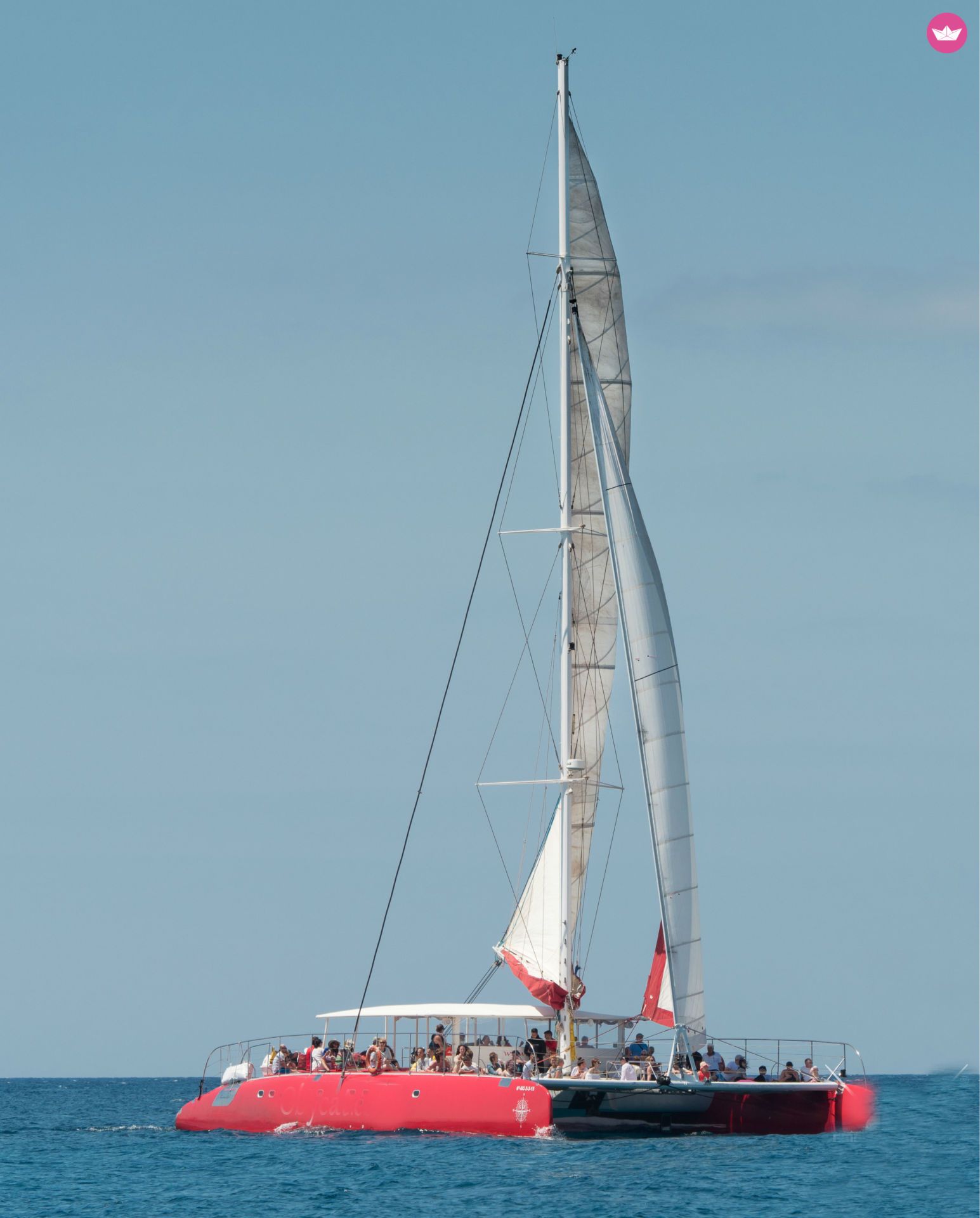 Description of Joana's catamaran , Horario de mañana – 11:00 a 15:00 Horario de tarde – 15:30 a 19:30. CONSULTAR PRECIOS Bienvenidos a Caleta de Fuste!! Gracias al gran tamaño del catamarán ofrecemos una capacidad máxima 80 personas podrá disfrutar cómodamente de la excursión, y la tripulación está a su disposición en todo momento para que no le falte de nada. Salimos desde el puerto de Caleta de Fuste, izamos las velas y ponemos rumbo al pueblo marinero de Pozo Negro. Durante toda la excursión dispondrá del servicio de bebidas incluidas (cerveza, refrescos y agua). Ya en nuestro destino, anclaremos en la bahía, y tendrá tiempo para practicar snorkell, darse un baño en el mar, o simplemente relajarse en la cubierta del catamarán tomando el sol. También es el momento de la actividad estrella de la excursión, subir en una increíble moto de agua personal se encargará de que sienta la velocidad de forma segura. A la hora del almuerzo se servirá a bordo una espléndida paella mixta, ensalada y papas arrugadas con mojo que seguro hará las delicias de todos. Y de postre podrá tomar fruta de temporada. Comida y bebida: Las bebidas están incluidas durante todo el trayecto (cerveza,champagne refrescos y agua). En el almuerzo se sirve paella, ensalada, papas arrugadas con mojo,pan para acompañar y postre (fruta de temporada). INVIERNO: 4 HORAS 2568€ 6 HORAS 3424€ 8 HORAS 4280€ SUNSET 2 HORAS 1177€ (solo bebidas) VERANO: 4 HORAS 3210€ 6 HORAS 4815€ 8 HORAS 6420€ El precio incluye: - Servicio de patrón - Gasolina - Comida - IGI No deje pasar la oportunidad de vivir una experiencia única. Fuerteventura es una isla espectacular, y navegar por su costa es un privilegio que nosotros le ponemos al alcance de su mano. Venga a conocernos y viva una una experiencia única.