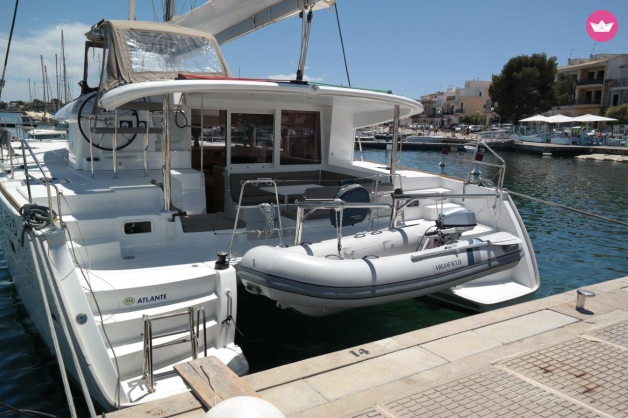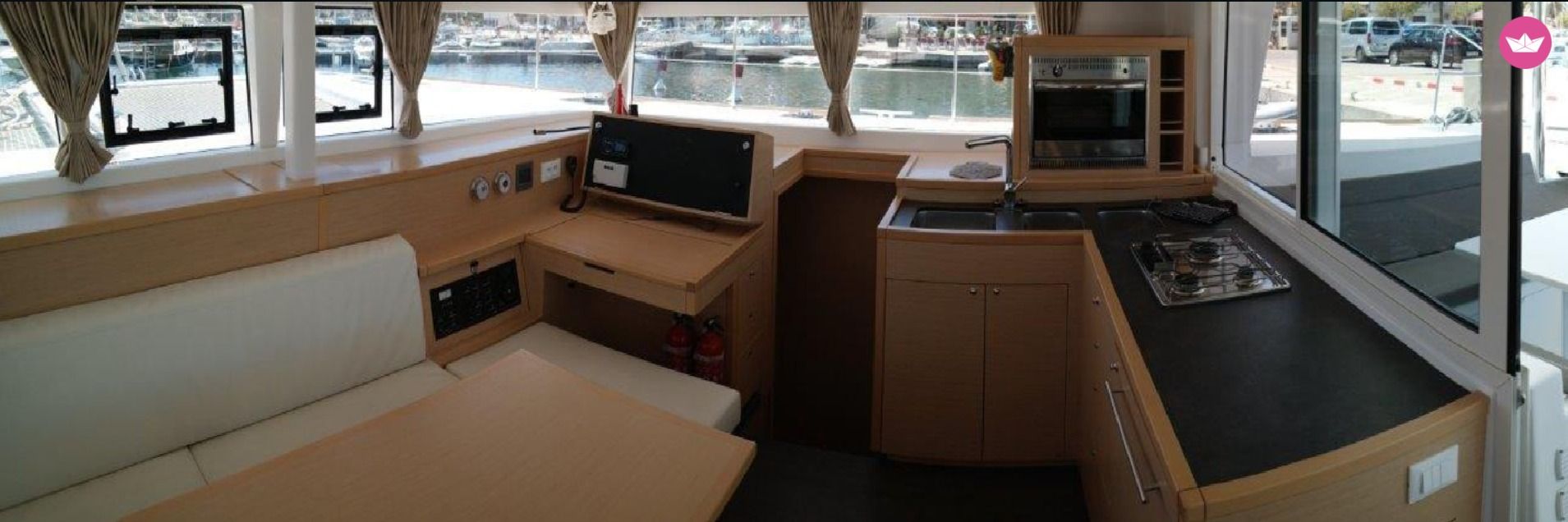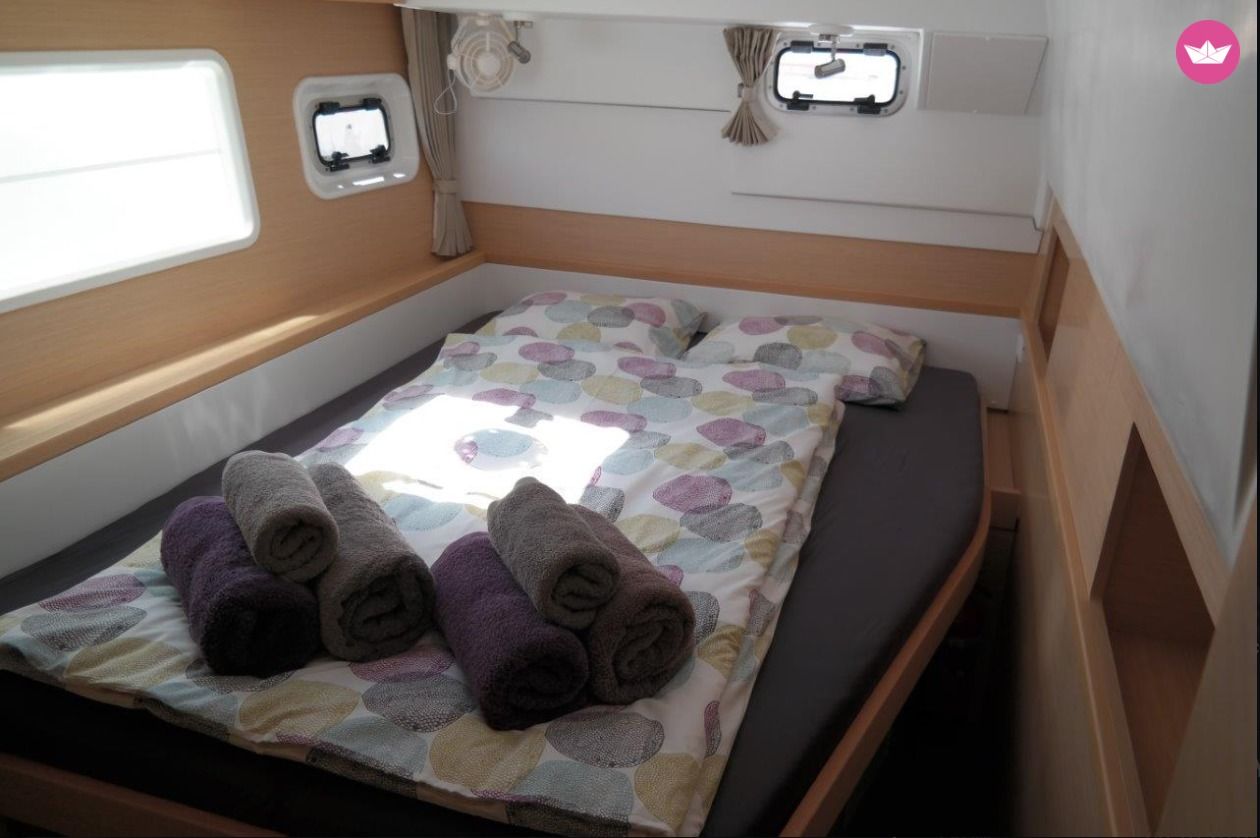 Description of Oliver's catamaran , Os proponemos lo siguiente: Navegue a la capital de Mallorca, Palma de Mallorca (ca.25 millas). Almuerce en fondeadero frente a la playa de es trence. Vaya en bote a uno de los chiringuitos o chiringuitos en la playa. Una vez que llegue a Palma, pruebe la vida nocturna en el casco antiguo con sus pequeñas calles y cientos de restaurantes y bares, o simplemente camine por el Paseo Marítimo hasta la catedral y el antiguo palacio del rey de España. Navegue a Sant Elm (22 millas), un pequeño fondeadero al pie de las montañas y frente a La Dragonera, otra reserva natural. Tome una boya y simplemente relájese o desembarque y pruebe los restaurantes de pescado. A partir de aquí, las montañas se elevarán sobre ti. Extras OBLIGATORIOS: - Consumo de gas cocina: 20,00 € por reserva - Limpieza final: 190,00 € por reserva - Reducción de exención de daños del depósito a 950€: 400 € por reserva - Combustible Extras OPCIONALES: - Reserva Natural Cabrera: 10,00 € por reserva - Anfitriona: 150,00 € por día + comida - Red para niños: 200,00 € por reserva. -Inversor eléctrico: 25,00 € por reserva. - Stand up paddle: 145,00 € por semana - Motor fueraborda: 150,00 € por semana. - Ropa de cama y toallas: 18,00 € por persona - Check-in después de las 20: 00h y domingos: 200,00 € por reserva TRASLADOS - Traslado Aeropuerto - Base, 1-4 PAX: 80,00 € por trayecto - Traslado Aeropuerto - Base, 5-8 PAX: 115,00 € por trayecto - Traslado Aeropuerto - Base, 9-12 PAX: 140,00 € por trayecto