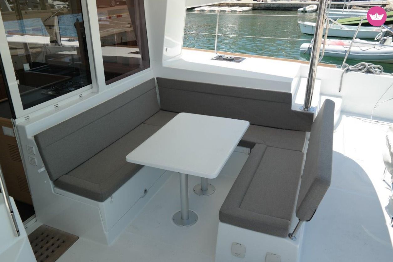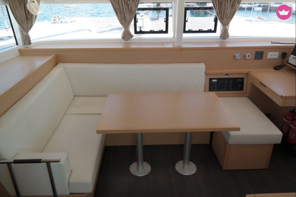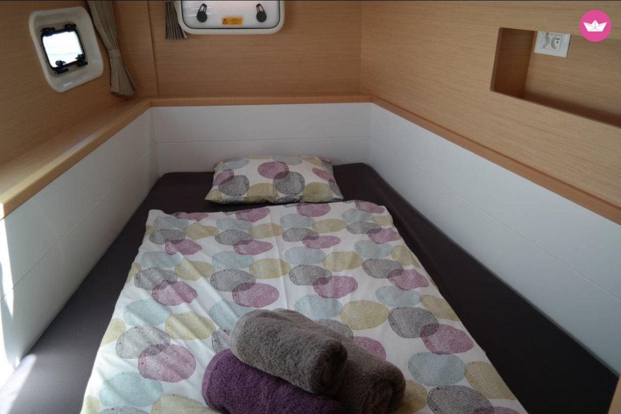 Description of Oliver's catamaran , Os proponemos lo siguiente: Navegue a la capital de Mallorca, Palma de Mallorca (ca.25 millas). Almuerce en fondeadero frente a la playa de es trence. Vaya en bote a uno de los chiringuitos o chiringuitos en la playa. Una vez que llegue a Palma, pruebe la vida nocturna en el casco antiguo con sus pequeñas calles y cientos de restaurantes y bares, o simplemente camine por el Paseo Marítimo hasta la catedral y el antiguo palacio del rey de España. Navegue a Sant Elm (22 millas), un pequeño fondeadero al pie de las montañas y frente a La Dragonera, otra reserva natural. Tome una boya y simplemente relájese o desembarque y pruebe los restaurantes de pescado. A partir de aquí, las montañas se elevarán sobre ti. Extras OBLIGATORIOS: - Consumo de gas cocina: 20,00 € por reserva - Limpieza final: 190,00 € por reserva - Reducción de exención de daños del depósito a 950€: 400 € por reserva - Combustible Extras OPCIONALES: - Reserva Natural Cabrera: 10,00 € por reserva - Anfitriona: 150,00 € por día + comida - Red para niños: 200,00 € por reserva. -Inversor eléctrico: 25,00 € por reserva. - Stand up paddle: 145,00 € por semana - Motor fueraborda: 150,00 € por semana. - Ropa de cama y toallas: 18,00 € por persona - Check-in después de las 20: 00h y domingos: 200,00 € por reserva TRASLADOS - Traslado Aeropuerto - Base, 1-4 PAX: 80,00 € por trayecto - Traslado Aeropuerto - Base, 5-8 PAX: 115,00 € por trayecto - Traslado Aeropuerto - Base, 9-12 PAX: 140,00 € por trayecto