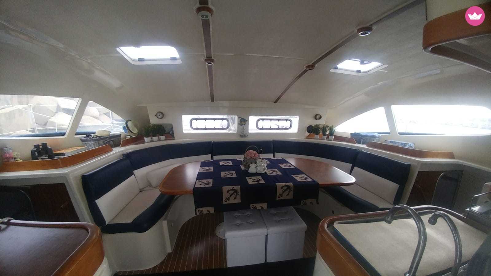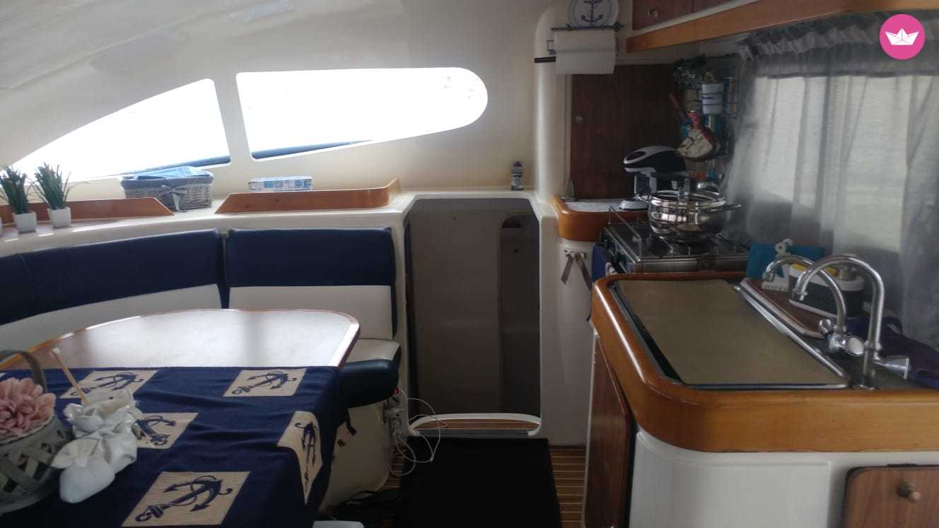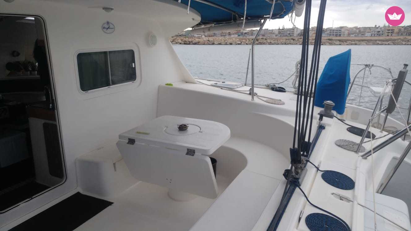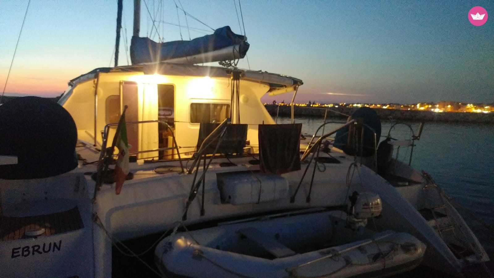 Description of Renato's catamaran , Bellissimo catamarano situato nella meravigliosa città di Scoglitti che vi permetterà di trascorrere momenti indimenticabili alla scoperta della costa di Marina di Ragusa insieme alla vostra famiglia ed amici. Il Dufour Nautitech 39.5 è il catamarano ideale per chi vuole navigare in completa sicurezza e massima comodità. La sua maneggevolezza permette di raggiungere anche le più piccole insenature e calette della Sicilia senza però rinunciare alle sue prestazioni sportive. Il catamarano è dotato di 4+ 2 cabine, 2 bagni ed una cucina completamente equipaggiata ed un ampio trampolino a prua dove potrete prendere il sole cullati dalle onde in totale relax. Il Prezzo comprende il costo dello skipper e il costo del carburante. cibo e bevande escluse. Mentre la barca è ormeggiata al porto, su richiesta, organizzeremo cene o aperitivi che potranno essere prenotati in esclusiva,dove potrete degustare i piatti tipici e le specialità della zona, tutto questo nella cornice mozzafiato del mar Mediterraneo. Scrivetemi su Catamaran Yacht Charter per avere maggiori informazioni!