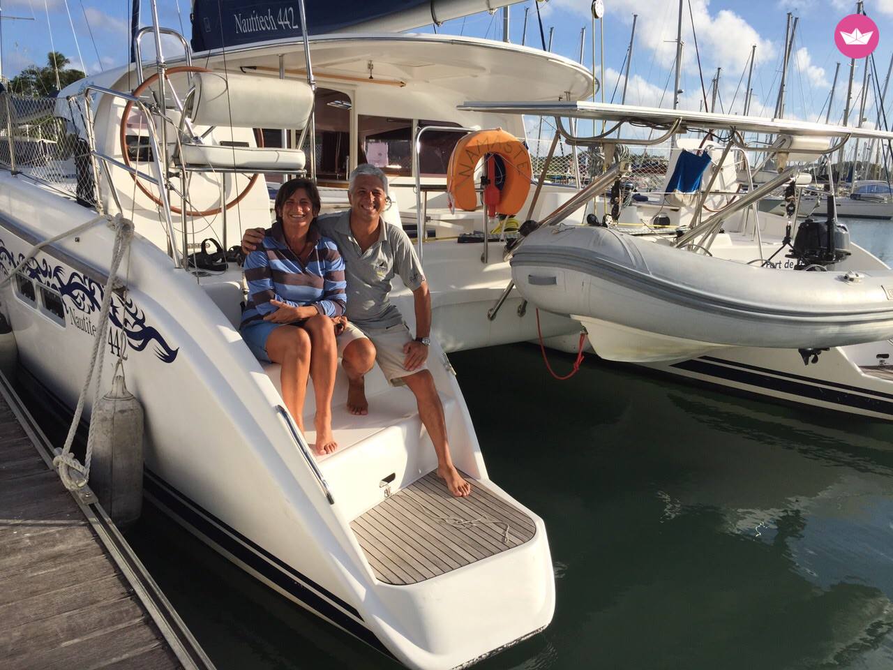 Description of Menico's catamaran , Noleggio questo catamarano Nautitech 442 per trascorrere indimenticabili crociere alle Grenadines nello spettacolare arcipelago delle Tobago Cays. È un catamarano di nuova concezione, perfetto per la navigazione in oceano a quelle latitudini e capace di offrire un livello di comfort eccezionale grazie al suo centro di gravità molto basso. Al suo interno Il Nautitech 442 è dotato di un bellissimo tavolo quadrato in grado di ricevere fino a max 10 ospiti, con un’eccezionale vista panoramica a 180° grazie alle vetrate anteriori ed alla vetrata scorrevole posteriore. Una cucina abitabile completamente equipaggiata, orientata ed aperta sul cockpit, che offre ai passeggeri un ampio e piacevole spazio tra l’interno e l’esterno dell’imbarcazione. Le cabine di poppa e prua per ogni scafo, per un totale di 4 cabine matrimoniali, sono veramente spaziose ed arieggiate con dei comodi bagni privati con vano doccia. All’esterno avrete a disposizione tutto lo spazio necessario per potervi rilassare e divertire anche grazie ad uno splendido trampolino a prua dove potrete prendere il sole mentre verrete cullati dal movimento delle onde ed accarezzati dal vento. Questo inverno organizziamo come di consueto ben 3 turni di crociere vela ai Caraibi, potendo prenotare anche singole cabine doppie con bagno, su questo catamarano con equipaggio. 1) Crociera di Natale dal 19 al 26 dicembre in Martinica e S. Lucia 2) Crociera di Capodanno con imbarco in Martinica dal 27/12 e termine il 6/01 al Blue Lagoon marina in S. Vincent 3) Crociera dell'Epifania con imbarco a S. Vincent il 6/01 e sbarco in Martinica il 17/01. Troverete incluso nel Prezzo: -Skipper + hostess, -Pulizia spazi comuni, -Pensione completa, -Biancheria bagno e cabina, -Tender -Wifi. Sono invece esclusi i costi di cambusa, drinks e carburante e sono in formula “All inclusive” al prezzo di € 40,00 a persona al giorno, al momento dell'imbarco.