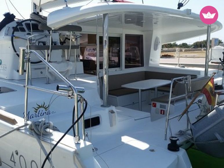 Description of Jaime's catamaran , Os presentamos nuestro catamarán LAGOON 400S2 MARTINA ONE, para charter en Sant Antonio – Ibiza. El alquiler podrá ser con o sin patrón, ( sin patrón se requerirá curriculum y experiencia en navegación). Nuestro catamarán podemos decir que es el más equipado y cuidado de toda la isla, con infinidad de extras. DISTRIBUCIÓN: Capacidad total 12 personas (11 más patrón), 4 camarotes, 4 baños, salón convertible y 2 conejeras independentes. Comedor interior y exterior. EQUIPO DE SEGURIDAD: Zona 2, balsa salvavidas, radiobaliza Epirb 406, VHF DSC, VHF portátil Solas y botiquín zona 2. ELECTRÓNICA: 2 Plotter, GPS, AIS, radar, sonda de pesca, tridata y piloto automático ST70. ACCESORIOS: Radio CD con altavoces. Bimini, 2 neveras, barbacoa y wifi. Potabilizadora de agua, generador eléctrico (nuevo 2018), placas solares, manguera de baldeo, 1 winch eléctrico y tumbonas exteriores. EMBARCACIÓN AUXILIAR: Semirrigida 3.40m. con motor 10cv. GATCHES: Paddel Surf y equipos de snorkel. El precio incluye: - IVA - Seguro TR embarcación y Seguro ocupantes No incluye: - Combustible - Manutención patrón - Transfers desde otros puertos - Amarres EXTRAS obligatorios: Pack Confort (450€): - Auxiliar y fueraborda HIGHFIELD 340 + 10CV - Limpieza final - Gas - Wifi - Sábanas y toallas - Barbacoa exterior - Hamacas - Equipos de snorkel - Paddle surf Optional Extras: Skipper 180.00 € per day Hostess 150.00 € per day Alquiler semanal: CHECK-IN Sábados: 15:00h a 17:00h CHECK-OUT Viernes 18:00h DAY CHARTER: CHECK-IN: 10:00h CHECK-OUT: 20:00h Fianza: 1.000€ con patrón de la empresa Para cualquier consulta quedamos a su disposición.