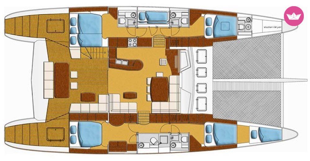 Description of Céline's catamaran , Bonjour, Venez découvrir les alentours de Saint Martin, visitez les Caraïbes et découvrir les Tobago cays à bord de ce sublime catamaran pouvant accueillir jusqu'à 28 personnes à son bord! Vous aurez la possibilité de dormir à 11 personnes puisque ce dernier possède 4 cabines doubles et un carré transformable! Ce dernier mesure 18,8 mètres de long et a été mis à l'eau en 2006. TARIFS : 2500 € net par jour pour un charter d'une semaine. 2300€ net par jour en charter de 2 semaines 3000 € net par jour pour week end de 3 jours Tarif hors carburant. Pour de plus amples informations, n'hésitez pas à revenir vers nous via la messagerie de Catamaran Yacht Charter! Cordialement.