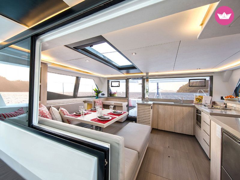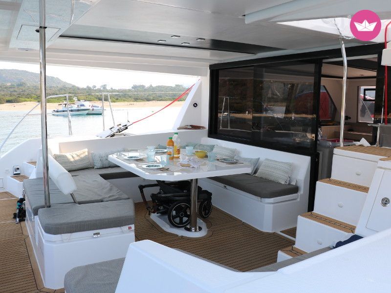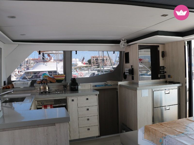 Description of Vincent's catamaran , Ce superbe catamaran est disponible au départ de Cogolin. En effet ce Léopard 45 est un catamaran neuf qui n'attend plus que vous pour prendre la mer. Pouvant accueillir un groupe d'une dizaine de personnes. Depuis Cogolin vous pourrez découvrir les merveilles de la Côte Méditerranéenne ainsi que la Corse si vous le désirez. Cette version 4 cabines doubles dispose d'un carré transformable pour accommoder votre groupe de 10 personnes. Vous trouverez 4 salles d'eaux avec WC et eau chaude. Une cuisine toute équipée avec un réfrigérateur et une machine à glaçon se trouve à bord. Une fois à l'extérieur vous trouverez un large espace avec une table et des banquettes pour profiter de vos repas à l'extérieur. Une large plateforme à l'arrière du bateau vous permet un accès à la mer beaucoup plus simple. OPTIONS (* = Obligatoire) : - Consommables* : 50€ / semaine - Forfait Ménage* : 300€ - Skipper : 300€ / jour - Première nuit à bord : 150€ / personne - Dernière nuit à bord : 150€ N'hésitez pas à me contacter via la messagerie Catamaran Yacht Charter pour échanger sur votre projet de navigation et organiser votre croisière ! Bonne journée et à bientôt !