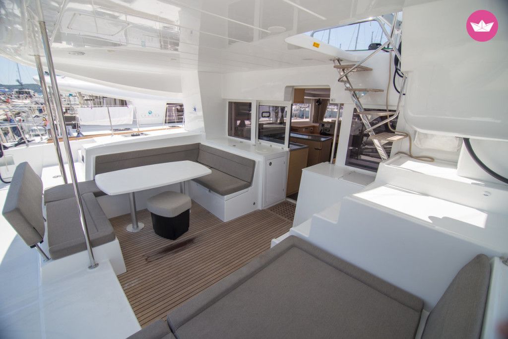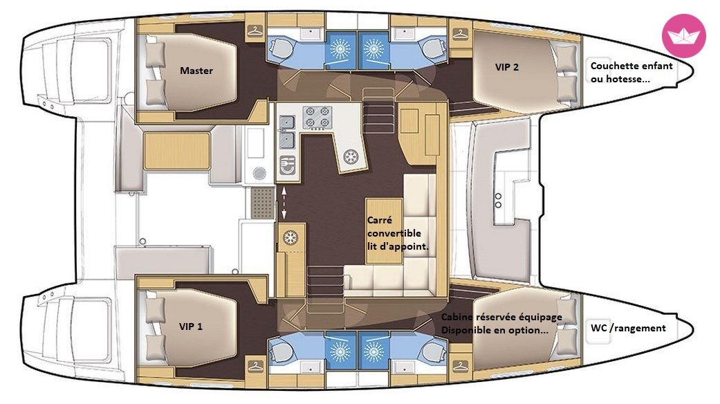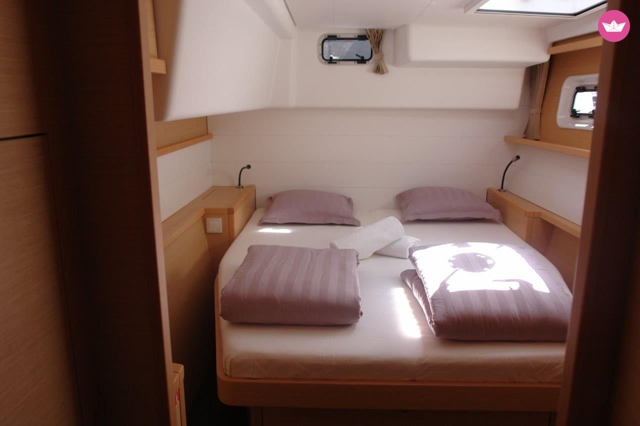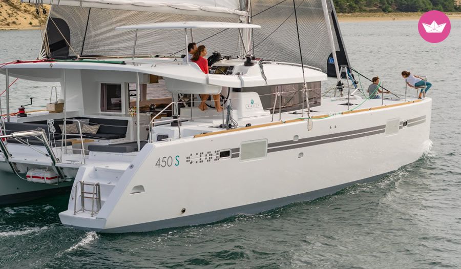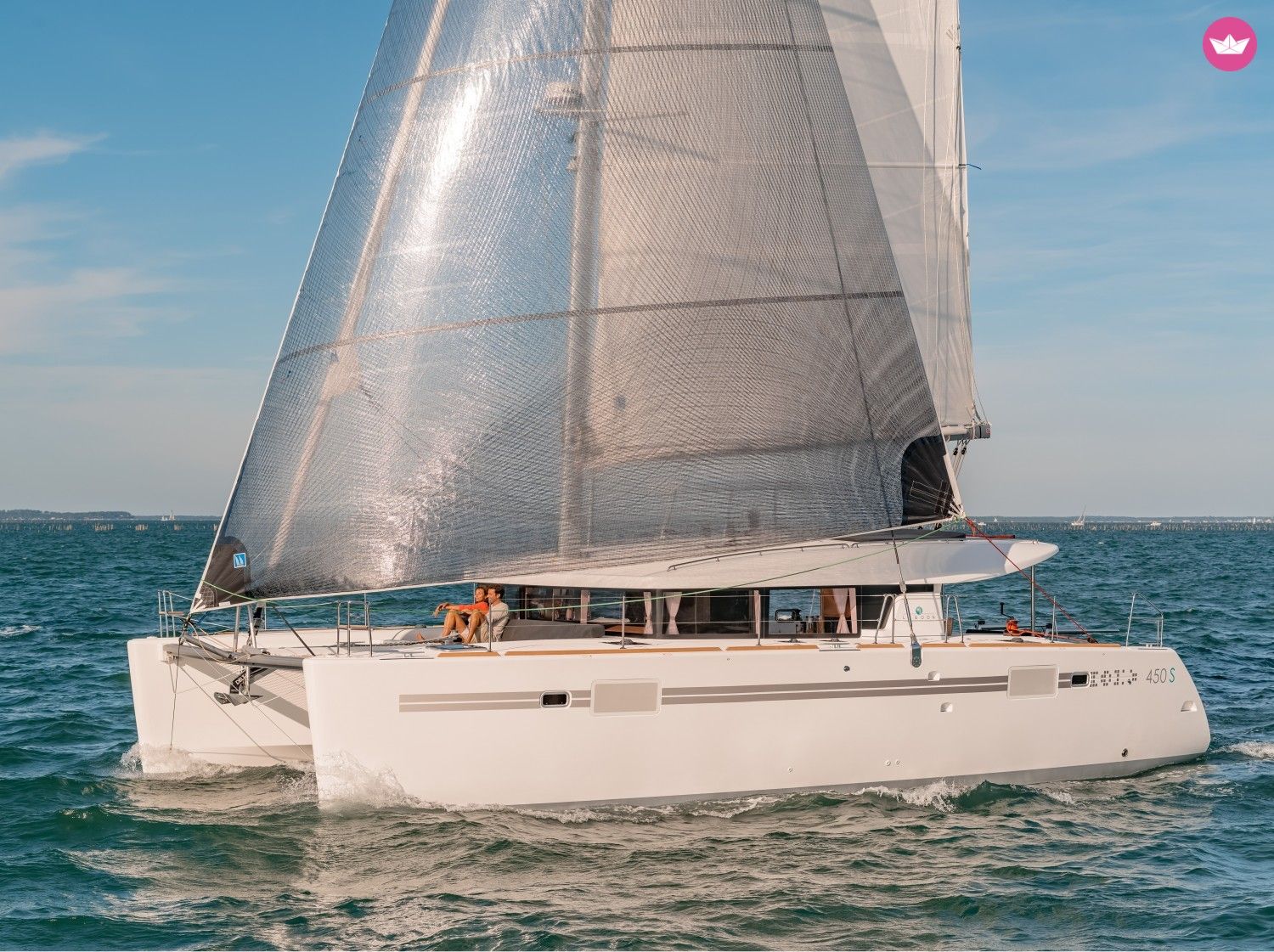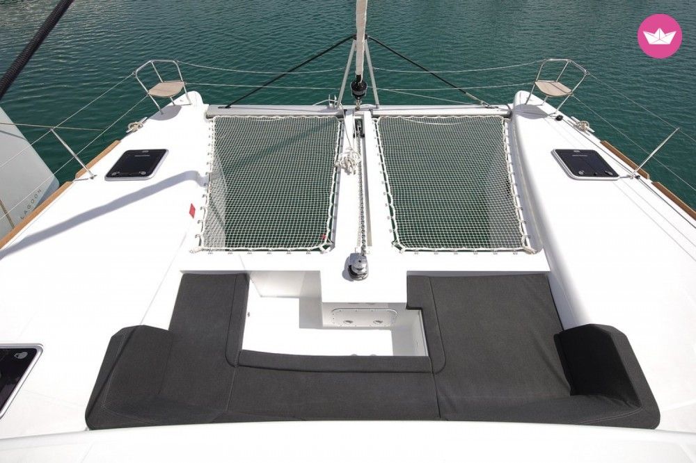 Description of Frederic's catamaran Hello and welcome to "MABUHAY" Gonzague, the accompagning skipper (sailor / cook), will be happy to welcome you aboard our brand new Lagoon 450 S catamaran for you to discover or rediscover Corsica. Our Lagoon 450 S is brand new March 2019, it is a 4 cabins full option: Clim, desal, TV, internet, paddles, snorkeling, annex, solar panels, washing machine and crockery, wifi 4G. But we wish preferably limited the number of passengers to 6 distributed in 3 double cabins + possibly square & forward equipped tip. The skipper occupying the double cabin before starboard in which we grouped all the controls of the optional equipment such as generator, watermaker, air conditioning to avoid having to disturb you during their operation (on / off). In accordance with the legislation in force of pleasure craft (non-NUC / RIF), the boat is rented "bare hull". The accompanying skipper and possibly the hostess are to be paid individually by the renter (invoice separately) at the latest on the day of embarkation for day trips, preferably with a deposit at the time of booking the boat for weekly rentals or more. Skipper accompanying (mandatory): 250 € / day 1750 € / week if 4 cabins occupied 1500 € / week if 3 cabins occupied Hostess (option): 150 € / day The amount to be paid on Catamaran Yacht Charter includes: - the rental of the boat and all its equipment (paddle, mask / snorkel, annex) - boat and passenger insurance - sheets and towels - TV, internet 4G, air conditioning, déssal. - Final cleaning offered if correct state of normal use. Do not includes : - remuneration and food crew. - diesel, count about 50 € / day of navigation / anchorage (engines & generator) - any shipping or mooring costs, local taxes in protected areas eg nature reserve of La Maddalena. - refueling. We are very flexible on the duration of the hiring (not necessarily 7 days nor obligatorily from Saturday to Saturday) ports of embarkation and landing can be different according to availability, time of Check in / out too. Initial refueling possible by internet with delivery on the boat in the morning of the first day of rental (Casino, Leclerc, Spar, Super U, depending on port of embarkation). See you soon on "MABUHAY" for an unforgettable holiday.