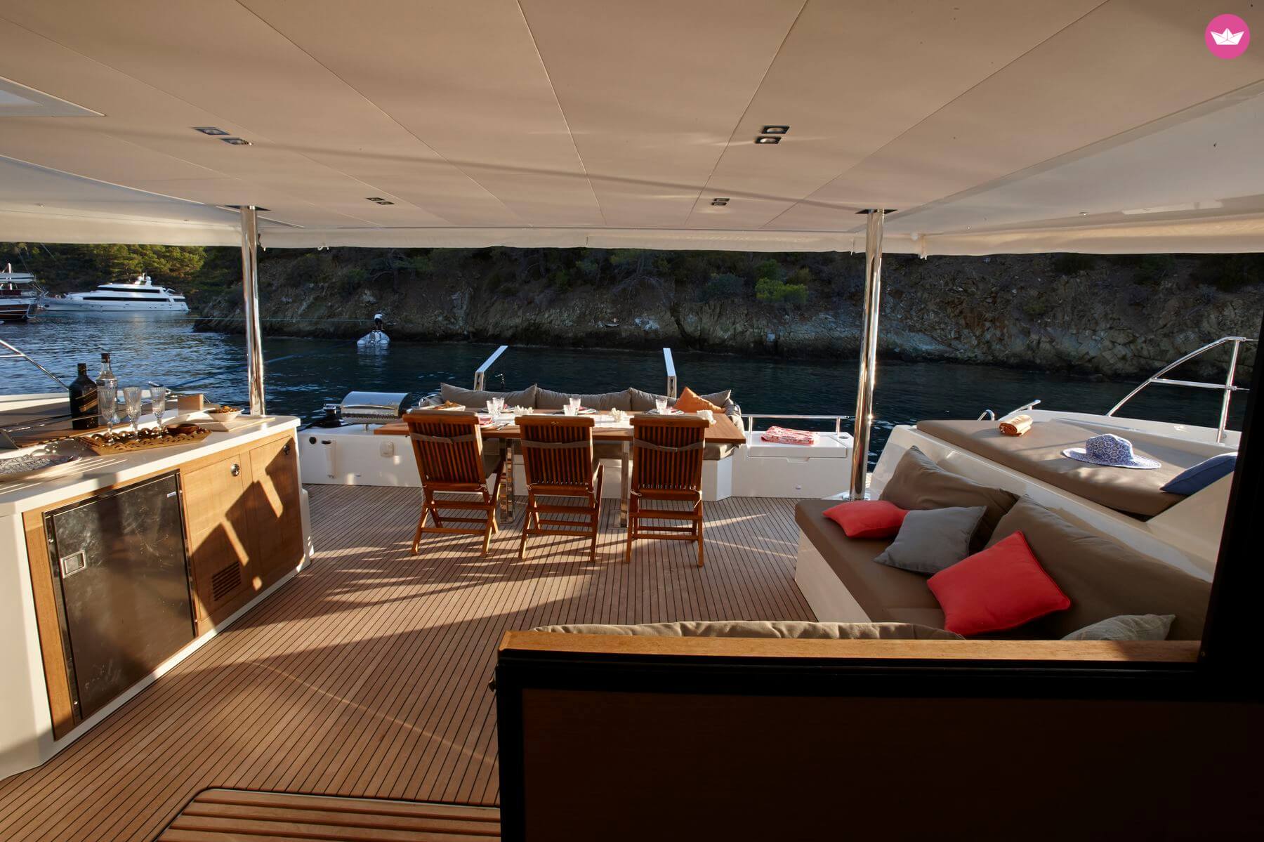 Description of Marie's catamaran , ***** Offres spéciales****** Iles sous le Vent uniquement, Sous conditions, selon disponibilités des bateaux 15% de remise pour une croisière entre 7 et 9 nuits Au-delà de 9 nuits, 25% de remise JANVIER-FEVRIER: 5 Janvier 2 019 au 16 Février 2 019 NOVEMBRE-DECEMBRE: 9 Novembre 2019 au 14 Décembre 2 019 *************************************************** Bonjour, Nous vous proposons à la location ce superbe catamaran Ipanema 58 de 2016 de 17 mètres de long. Vous aurez la possibilité de louer ce dernier sur Tahiti au départ de Huahine! Aménagement de ce catamaran Ipanema 58: 5 cabines doubles clients avec leur salle de bain privée – l’équipage de 3 personnes disposant de leur cabine et salle de bain privative – un spacieux salon intérieur, un large cockpit extérieur avec un cockpit de 25 m², des bains de soleil à l’avant près du trampoline, et un très grand Flybridge/ pont supérieur près du poste de pilotage, accueillant un salon d’extérieur Croisières dans les Iles-Sous-le Vent avec équipage Tahiti Yacht Charter obligatoire de 3 personnes : skipper/guide, hôtesse/cuisinière et aide/marin Jour d’embarquement libre. Embarquement et débarquement au ponton de votre hôtel si accessible par Solea Un équipage de trois personnes (Skipper, marin et hôtesse/Cuisinière) sera ravi de vous accueillir à bord! Ce catamaran dispose de l'air conditionnée dans chacune des cabines! Nous proposons en option payante le transfert depuis l'aéroport de Raiatea vers notre base = 15 euros / trajet, pour tout le groupe ! Notre pack confort 150 € (obligatoire à bord durant toute la durée de la croisière, indissociable), inclut: - 1 kayak + 1 stand up paddle - 2 hamacs flottants - palmes, masques, tubas - 1 ligne de traîne (si skipper TYC à bord), - 1 annexe semi-rigide avec moteur HB, - 1 barbecue bateau, - serviettes, draps, - 1 convertisseur, - 2 sacs de glaçons au départ Bateaux équipés de : GPS / Traceur de carte Pilote automatique Guindeau électrique panneaux solaires La pension complète : - Petit déjeuner continental (supplément pour un American breakfast, 15 euros / pax / jour, hors commission) - Déjeuner et dîner de 2 plats - Les boissons sont en option payante (eau minérale incluse). Une liste sera envoyée, livraison directe à bord au prix supermarché + 10% de service, à régler le jour du départ Le cv nautique (location en bareboat) : Lorsque le bateau est loué en bareboat (sans équipage TYC à bord), un CV nautique est toujours demandé, et soumis à l’approbation de nos assurances La caution de sécurité : Merci de noter qu’à l’embarquement, une caution de sécurité doit être laissé (empreinte de carte, visa ou mastercard) – nous ne débitons rien et c’est entièrement remboursable si pas de dégâts ni dommages des clients à bord. Il faudra bien vérifier que la carte soit déplafonnée. · 6 000 euros de caution de sécurité si le client ne prend pas d’option assurance/rachat de franchise · 2 000 euros de caution de sécurité si l’option assurance/rachat de franchise est prise, sur tous nos catamarans en version grande croisière Notre minimum location est de 3 nuits, nos départs se font tous les jours de la semaine, le samedi n'est pas une obligation. Pour de plus amples informations, n'hésitez pas à nous contacter via la messagerie de Catamaran Yacht Charter. Cordialement.