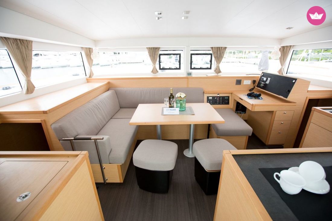Description of Marie-Ève's catamaran Welcome aboard this amazing Catamaran. From , Bahamas you can set sail for a week or two in this wonderful destination. This 2016 version comes with 4 double cabins and a single berth. It can accomodate a group of 9 persons maximum. Either with or without Skipper, the Lagoon 400 can set sail to Cuba, Haïti, Florida and many other places ! With two showers with hot/cold water and two toilets the boats has all the comfort you need for this trip. The fully equipped kitchen (Gas Stove Oven, Microwave, Fridge, watermaker...). With many windows the boat is very luminous during the day. The outside deck comes with a large platform to access the water easily. OPTIONS : -Skipper : 200$ / day - Wifi : 15$ / day - Hostess : 200$/ day You can contact me through Catamaran Yacht Charter chat to discuss about your navigation project and to plan your trip ! Have a good day and see you soon !