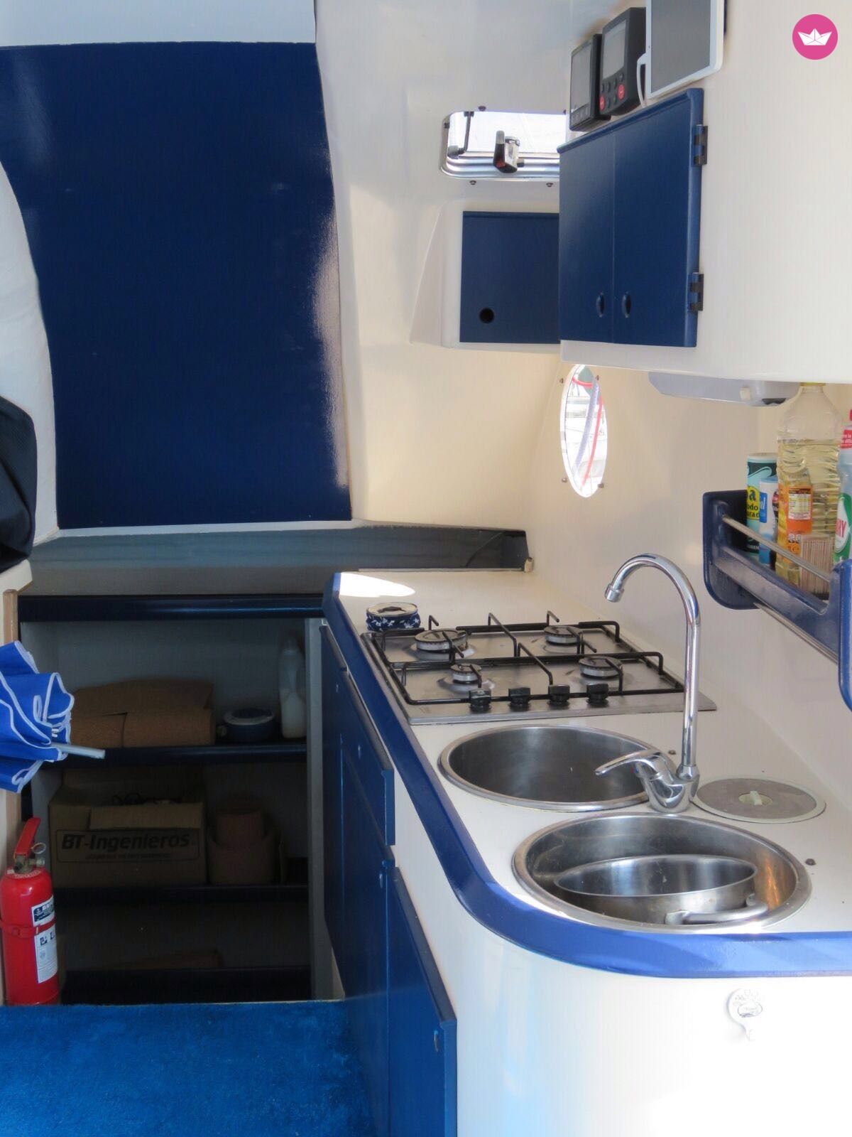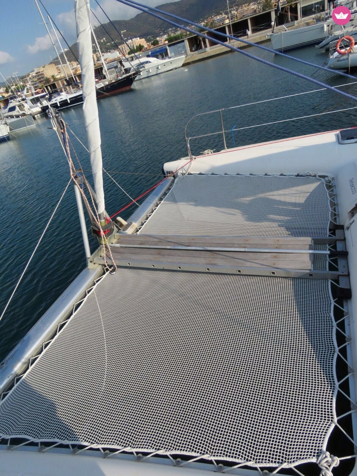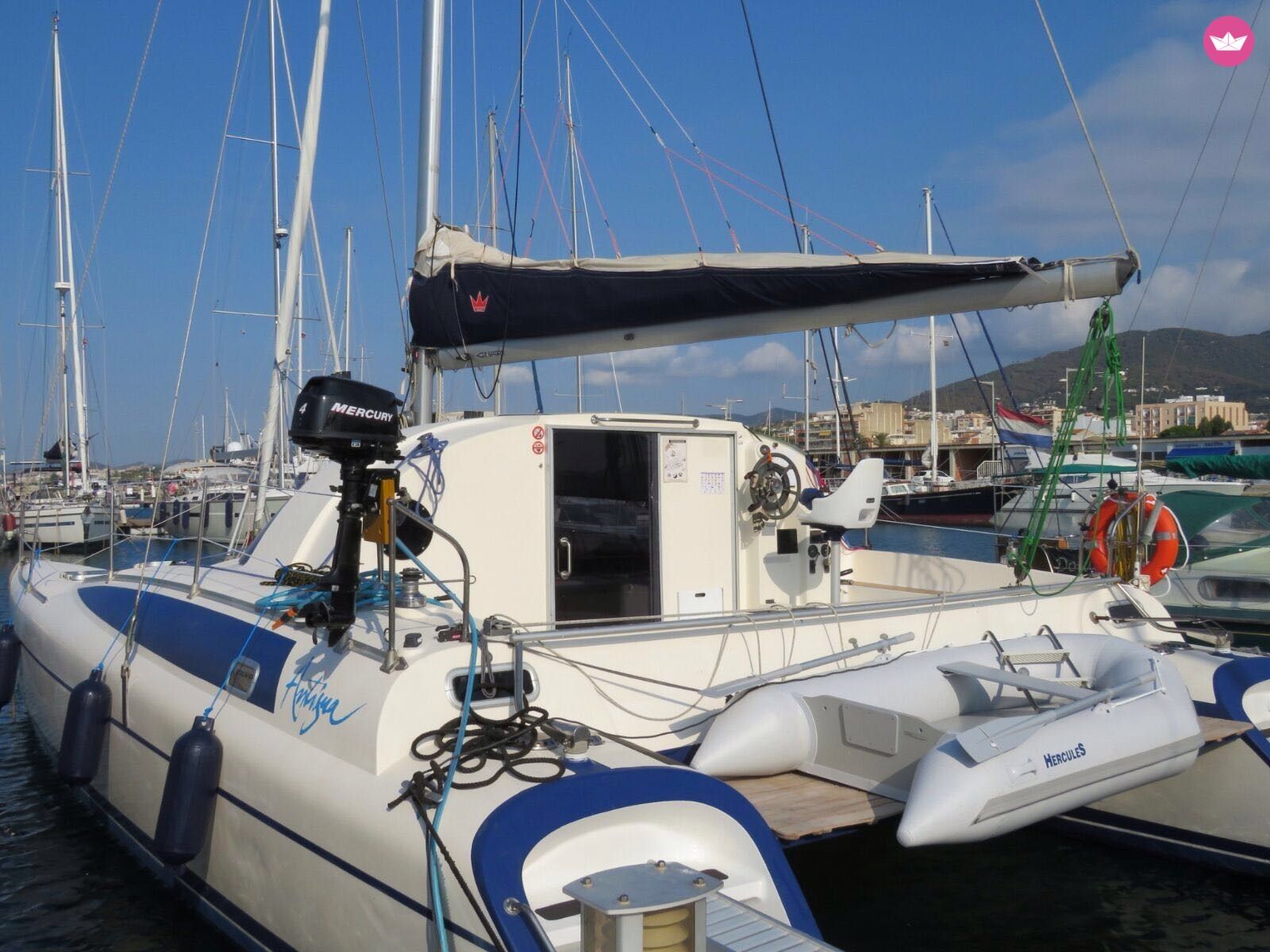 Description of Enzo's catamaran , Catamarán de vela completamente equipado, rápido a vela o a motor. Te invito a que subas a mi catamarán y experimenta el mundo de la Vela a boro de esta maravillosa embarcación. Para navegar su ubicación es excelente al estar en plena costa del mediterráneao y a tan solo 120 kilómetros de los Pirineos y de la frontera con Francia. Además, con el alquiler de un barco en Barcelona vivirás una experiencia única, navegando por la costa y disfrutando de los puntos más emblemáticos de la ciudad desde una perspectiva jamás vista, como la Torre de Agbar, las Torres de la Villa Olímpica, Montjuic, la Sagrada Familia, entre otros, o gozar de una navegación por la costa brava o por el sur de Francia. En cuanto al barco consta de: Escalera de baño, solarium en proa y ducha exterior. Como no, agua fríaa, caliente, aseo e inodoro. El equipamiento automático consta de: Molinete eléctrico, GPS, sonda y piloto automático. Te animo a que navegues en esta preciosa embarcación. Recuerda que SOLAMENTE se alquila el barco CON patrón! Los gastos extra del patrón son: 150€ en temporada alta 100€ en temporada baja Gastos de limpieza final: 100€ Te espero marinero!