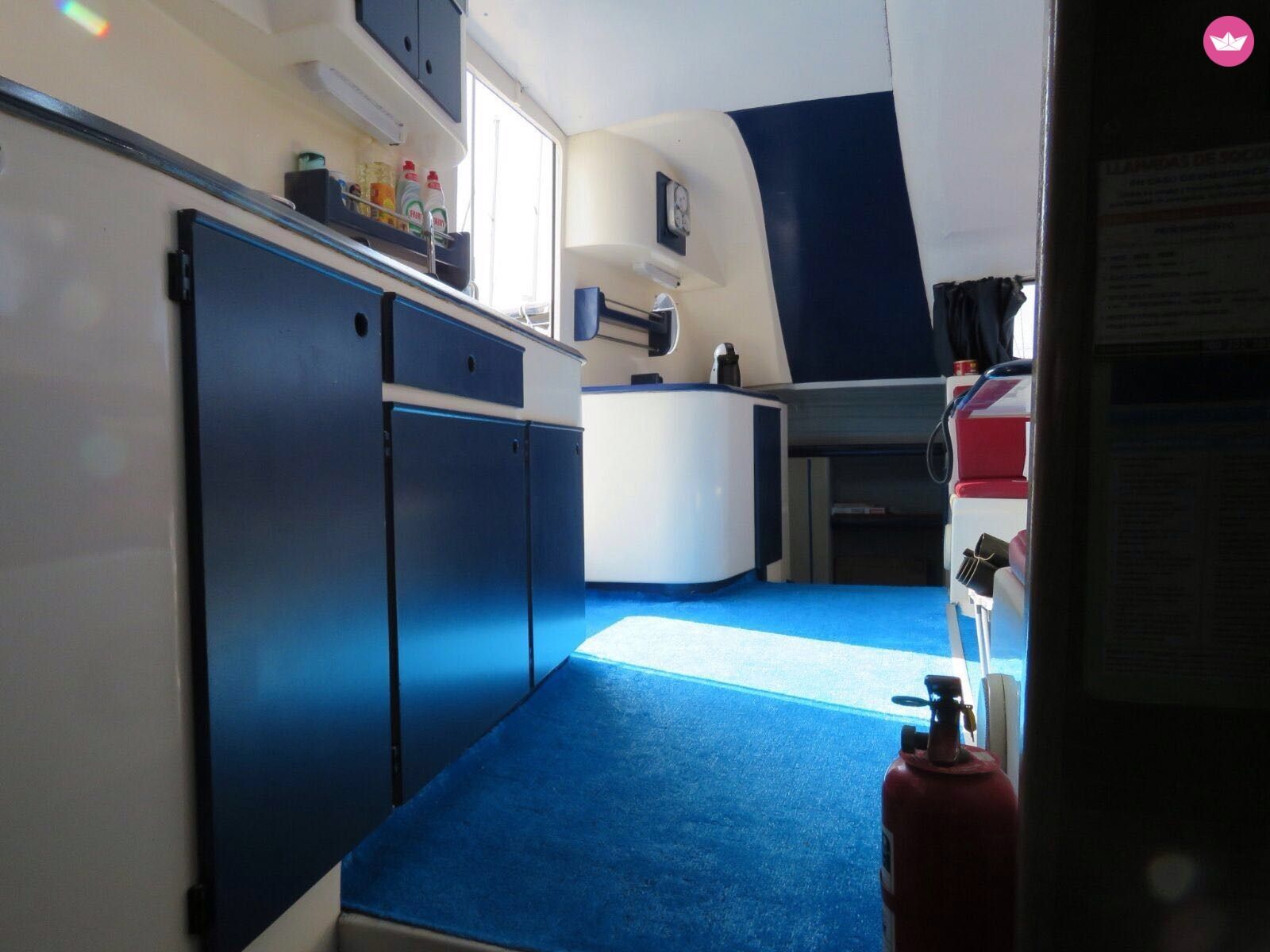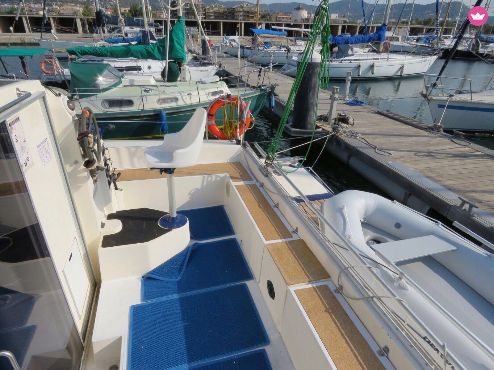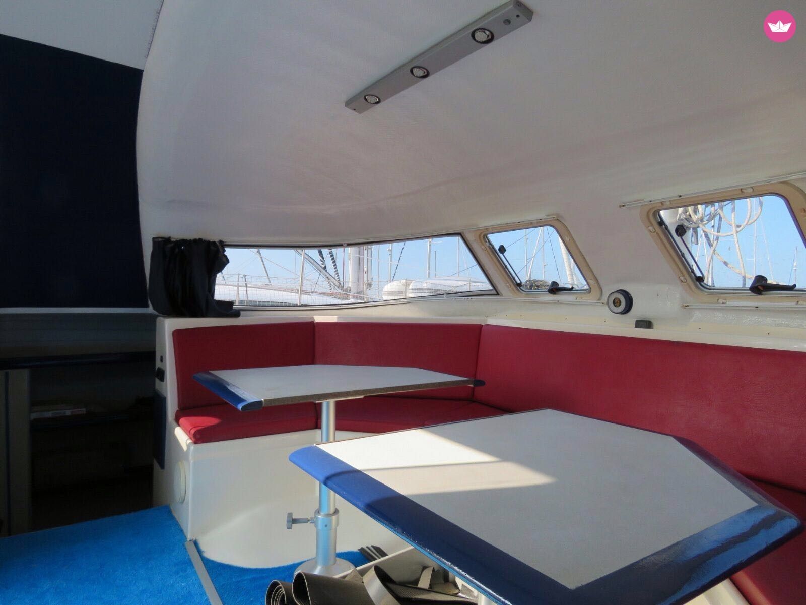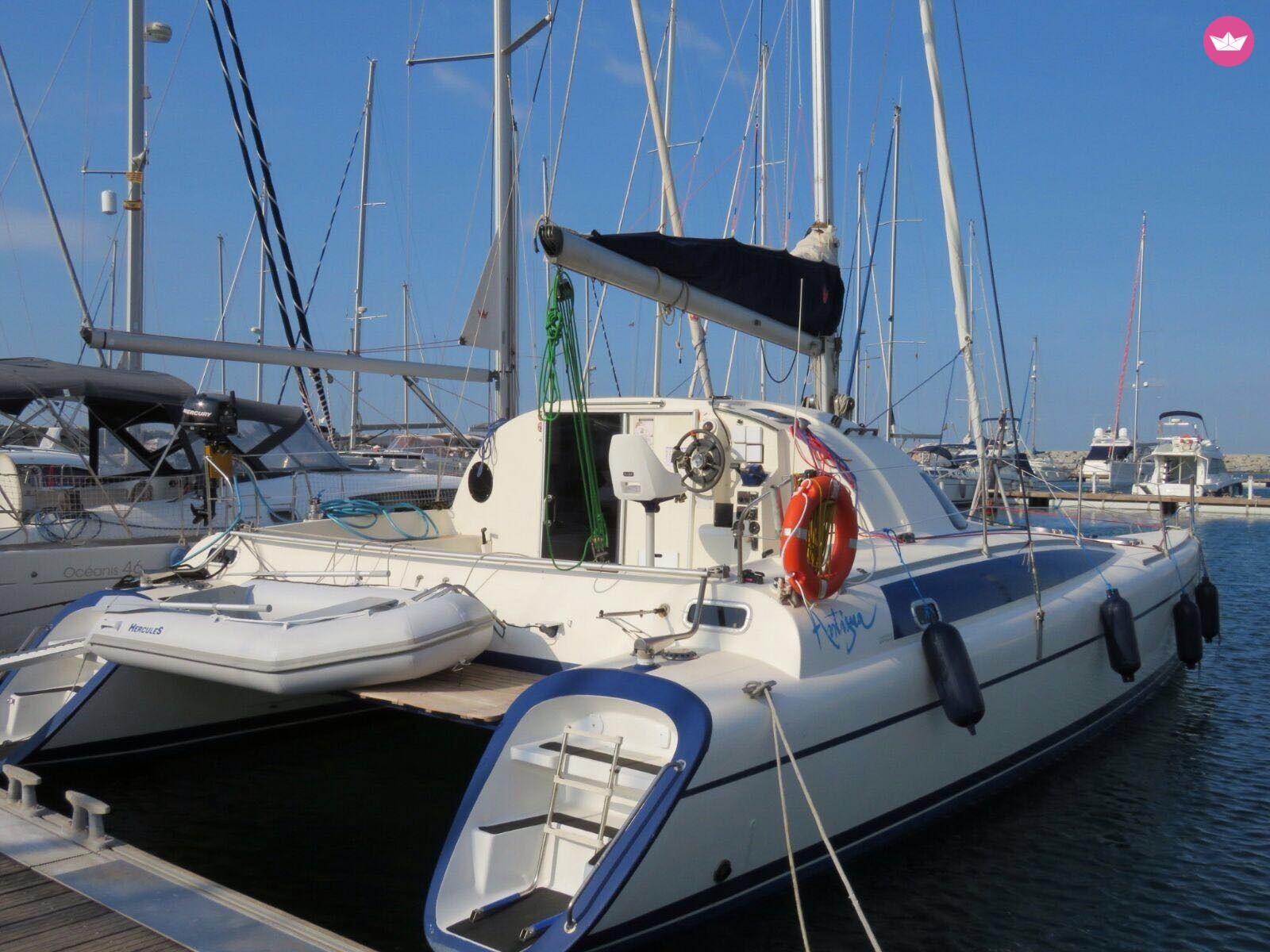 Description of Enzo's catamaran , Catamarán de vela completamente equipado, rápido a vela o a motor. Te invito a que subas a mi catamarán y experimenta el mundo de la Vela a boro de esta maravillosa embarcación. Para navegar su ubicación es excelente al estar en plena costa del mediterráneao y a tan solo 120 kilómetros de los Pirineos y de la frontera con Francia. Además, con el alquiler de un barco en Barcelona vivirás una experiencia única, navegando por la costa y disfrutando de los puntos más emblemáticos de la ciudad desde una perspectiva jamás vista, como la Torre de Agbar, las Torres de la Villa Olímpica, Montjuic, la Sagrada Familia, entre otros, o gozar de una navegación por la costa brava o por el sur de Francia. En cuanto al barco consta de: Escalera de baño, solarium en proa y ducha exterior. Como no, agua fríaa, caliente, aseo e inodoro. El equipamiento automático consta de: Molinete eléctrico, GPS, sonda y piloto automático. Te animo a que navegues en esta preciosa embarcación. Recuerda que SOLAMENTE se alquila el barco CON patrón! Los gastos extra del patrón son: 150€ en temporada alta 100€ en temporada baja Gastos de limpieza final: 100€ Te espero marinero!
