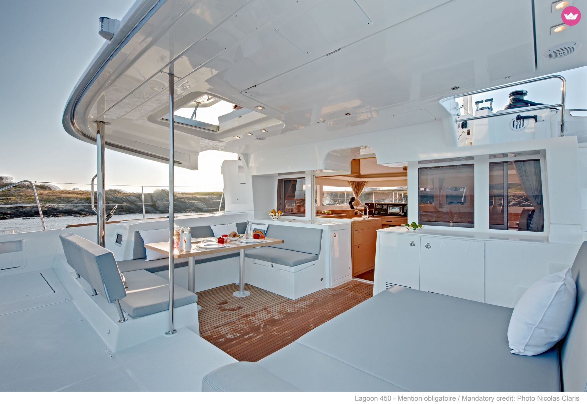 Description of Alessandro's catamaran , Noleggio bellissimo Lagoon 450 Fly Bridge H che vi permetterà di trascorrere giornate all'insegna del relax e del divertimento in compagnia di amici e famiglia! Questo nuovissimo catamarano verrà consegnato nella primavera del 2019, e a bordo vivrete davvero un'esperienza unica ed indimenticabile! A disposizione dei clienti quattro comode cabine doppie con letto matrimoniale e quattro bagni con doccia. Infine, altri due posti letto sono ricavabili dall'ampia e luminosa dinette! Ogni ambiente è dotato di aria condizionata! La cucina è completamente attrezzata, e troverete anche macchina da caffè, lavastoviglie e lavatrice. All' esterno c'é un grande pozzetto con una seconda zona pranzo formata da tavolo e divano con cuscini per gustare meravigliosi pasti all'aria aperta. Sui nostri catamarani troverete vari extra inclusi nel prezzo: - Motore fuoribordo per il tender - Barbecue a gas - Birra alla spina senza limiti! - Sup e Canoa - Attrezzatura da snorkeling e da pesca Extra: - Skipper(obbligatorio) 180€/giorno - Pulizie finali(obbligatorie) 180€ - Carburante a consumo (10 litri/h x 1,6€) - Hostess 110€/giorno - Wifi 40€/5gb - 150€ rete di protezione - Biancheria 30€/cabina - 2 ascigamani da bagno 10€/persona I nostri catamarani vengono noleggiati solo con skipper, non é previsto nessun deposito cauzionale! Il noleggio di 3 giorni si intende con imbarco venerdì alle 17 e sbarco domenica alle 17.00 Partendo dalla nostra base a Porto Pozzo potrete scoprire tutta la meravigliosa Costa Smeralda, La Maddalena o anche fare rotta per la Corsica. Scrivetemi su Catamaran Yacht Charter per avere maggiori informazioni!
