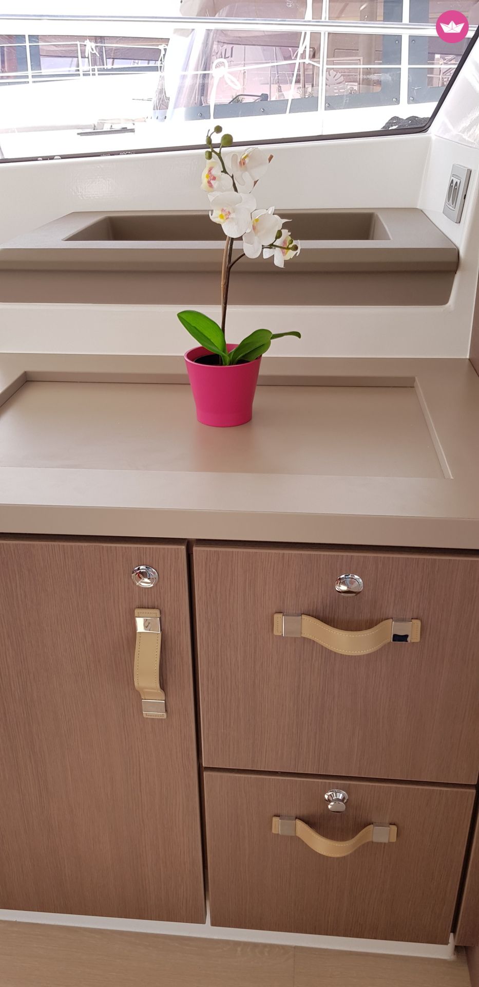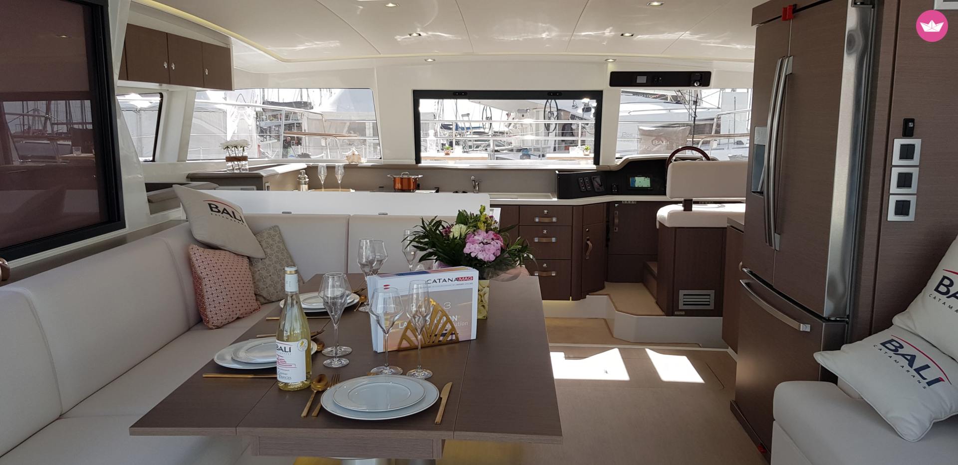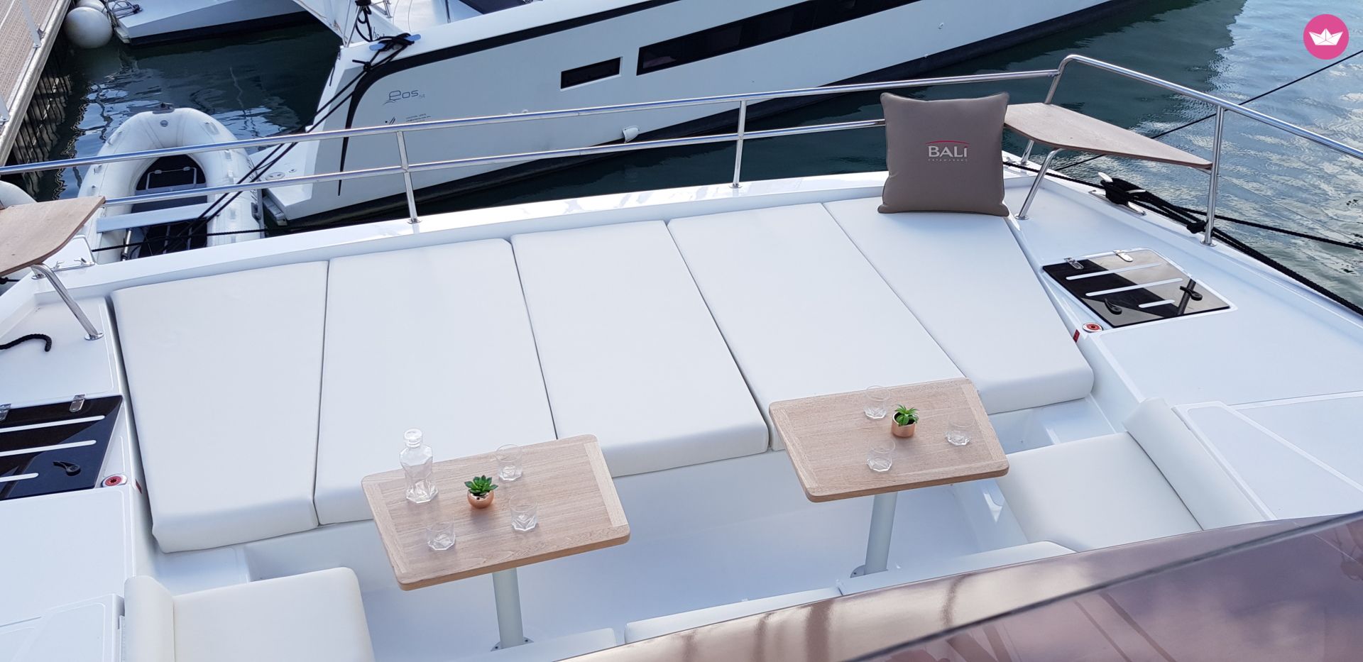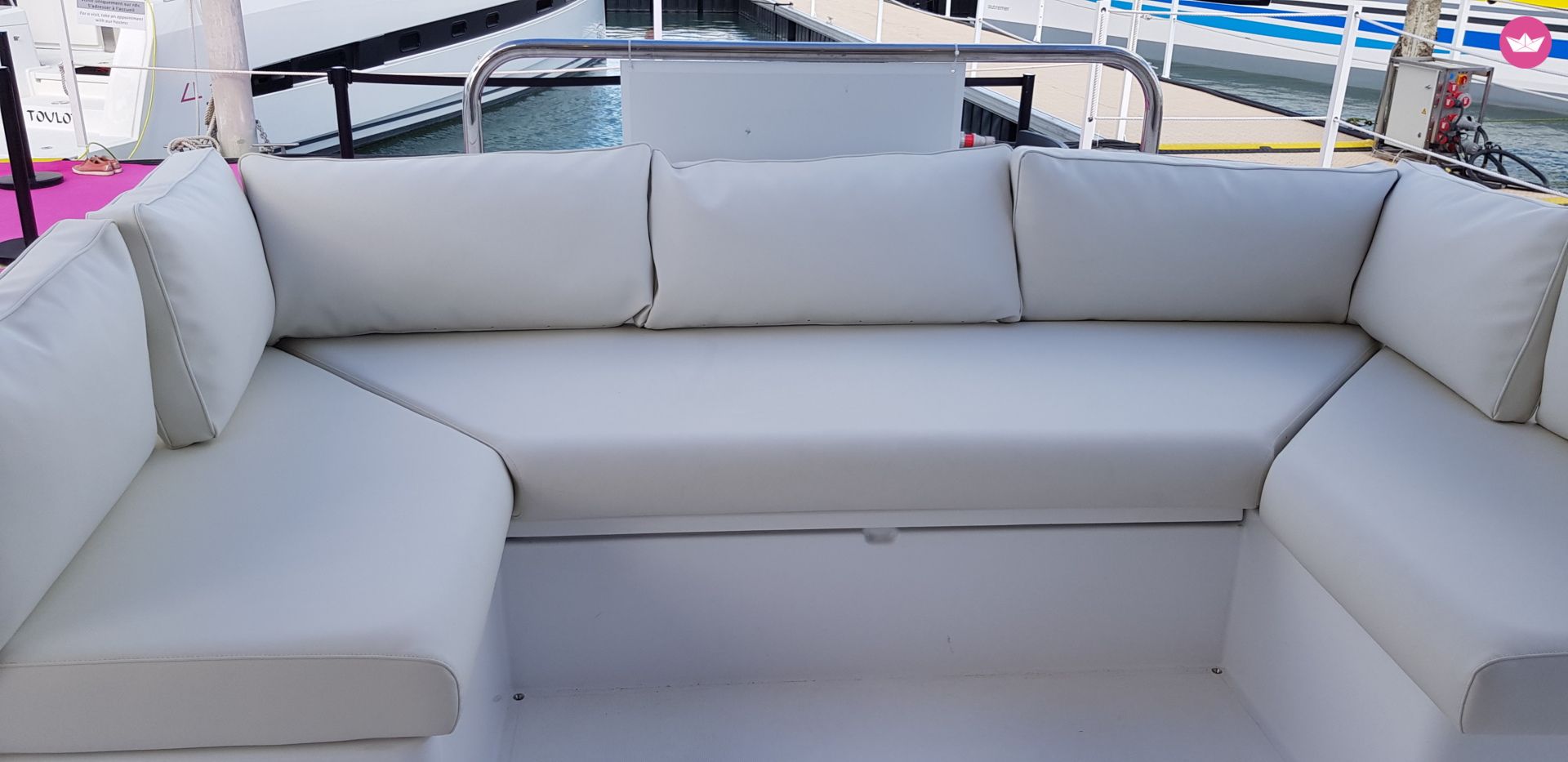 Description of Françoise's catamaran , NOVEDAD EN EL 2019! Nuevo catamáran a motor moderno de última generación de 2019, equipado con 2 motores de 250 caballos cada uno con el cual podrás disfrutar de las vacaciones con sensación de espacio. En verano casi todos los veleros acaban navegando a motor ! Aqui no hay duda,que haya viento o no, podrás ir dónde más te apetezca, y más rápido si lo deseas. Es un catamáran con fly bridge con una comodidad única, acompañados de nuestro patrón descubrirás la costa que más te apetezca. Es una barco NUEVO A ESTRENAR con el cual tendrás la comodidad asegurada a nivel de cocina totalmente equipada, salón abierto a popa , 4 dormitorios dobles, 2 individuales y 3 baños. Elegante y con mucha clase este barco es una joya flotante. Amplios espacios, un solarium en proa para disfrutar del mar a gusto con sus mesitas para tomar aperitivo o comer, su puerta del salón que se integra totalmente en el techo una vez abierta dejando un espacio abierto con vista directa al mar. Ideal para sus vacaciones . El precio incluye: - IVA - Amarre puerto base ( Port Ginesta- Barcelona). -Seguro a todo riesgo. Gastos obligatorios : - Patrón : + 220€/día + comidas - Pack confort : 490.-€ ( incluye tollas baño/ropa de cama/limpieza final) Opciones : - Azafata : 160.-€/dia + comidas - Cocinera chef : 190.-€/día - Paddle surf : 130.-€/semana Si tienes alguna duda respecto a disponibilidad y servicio no dude en contactarnos a través de Catamaran Yacht Charter. Os esperamos pronto navegante! Un saludo!