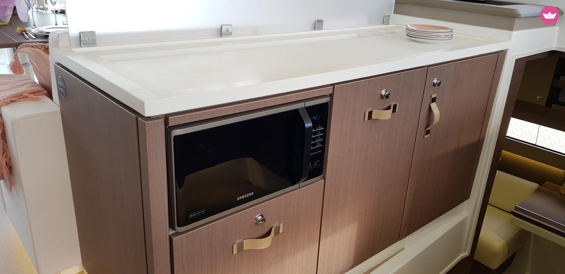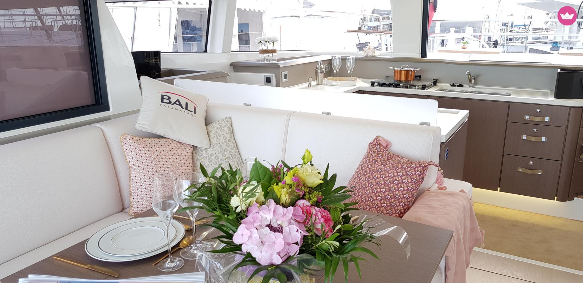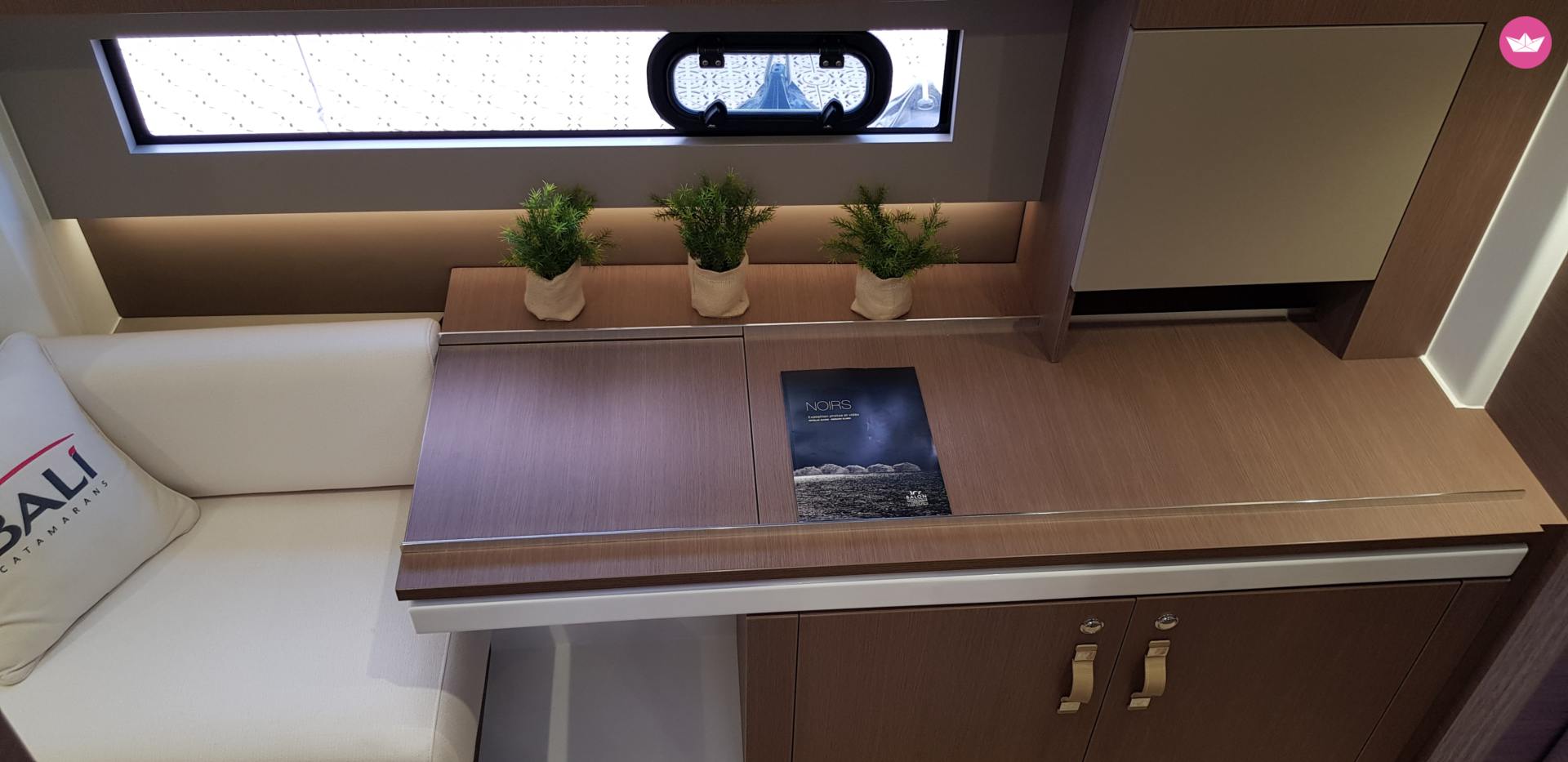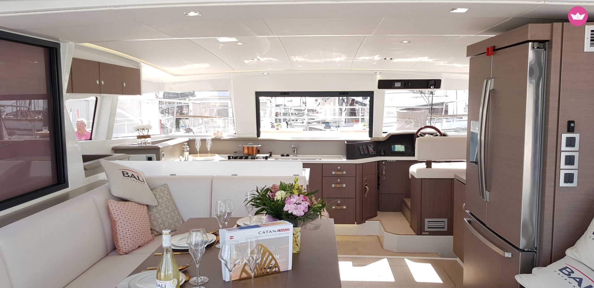 Description of Françoise's catamaran , NOVEDAD EN EL 2019! Nuevo catamáran a motor moderno de última generación de 2019, equipado con 2 motores de 250 caballos cada uno con el cual podrás disfrutar de las vacaciones con sensación de espacio. En verano casi todos los veleros acaban navegando a motor ! Aqui no hay duda,que haya viento o no, podrás ir dónde más te apetezca, y más rápido si lo deseas. Es un catamáran con fly bridge con una comodidad única, acompañados de nuestro patrón descubrirás la costa que más te apetezca. Es una barco NUEVO A ESTRENAR con el cual tendrás la comodidad asegurada a nivel de cocina totalmente equipada, salón abierto a popa , 4 dormitorios dobles, 2 individuales y 3 baños. Elegante y con mucha clase este barco es una joya flotante. Amplios espacios, un solarium en proa para disfrutar del mar a gusto con sus mesitas para tomar aperitivo o comer, su puerta del salón que se integra totalmente en el techo una vez abierta dejando un espacio abierto con vista directa al mar. Ideal para sus vacaciones . El precio incluye: - IVA - Amarre puerto base ( Port Ginesta- Barcelona). -Seguro a todo riesgo. Gastos obligatorios : - Patrón : + 220€/día + comidas - Pack confort : 490.-€ ( incluye tollas baño/ropa de cama/limpieza final) Opciones : - Azafata : 160.-€/dia + comidas - Cocinera chef : 190.-€/día - Paddle surf : 130.-€/semana Si tienes alguna duda respecto a disponibilidad y servicio no dude en contactarnos a través de Catamaran Yacht Charter. Os esperamos pronto navegante! Un saludo!
