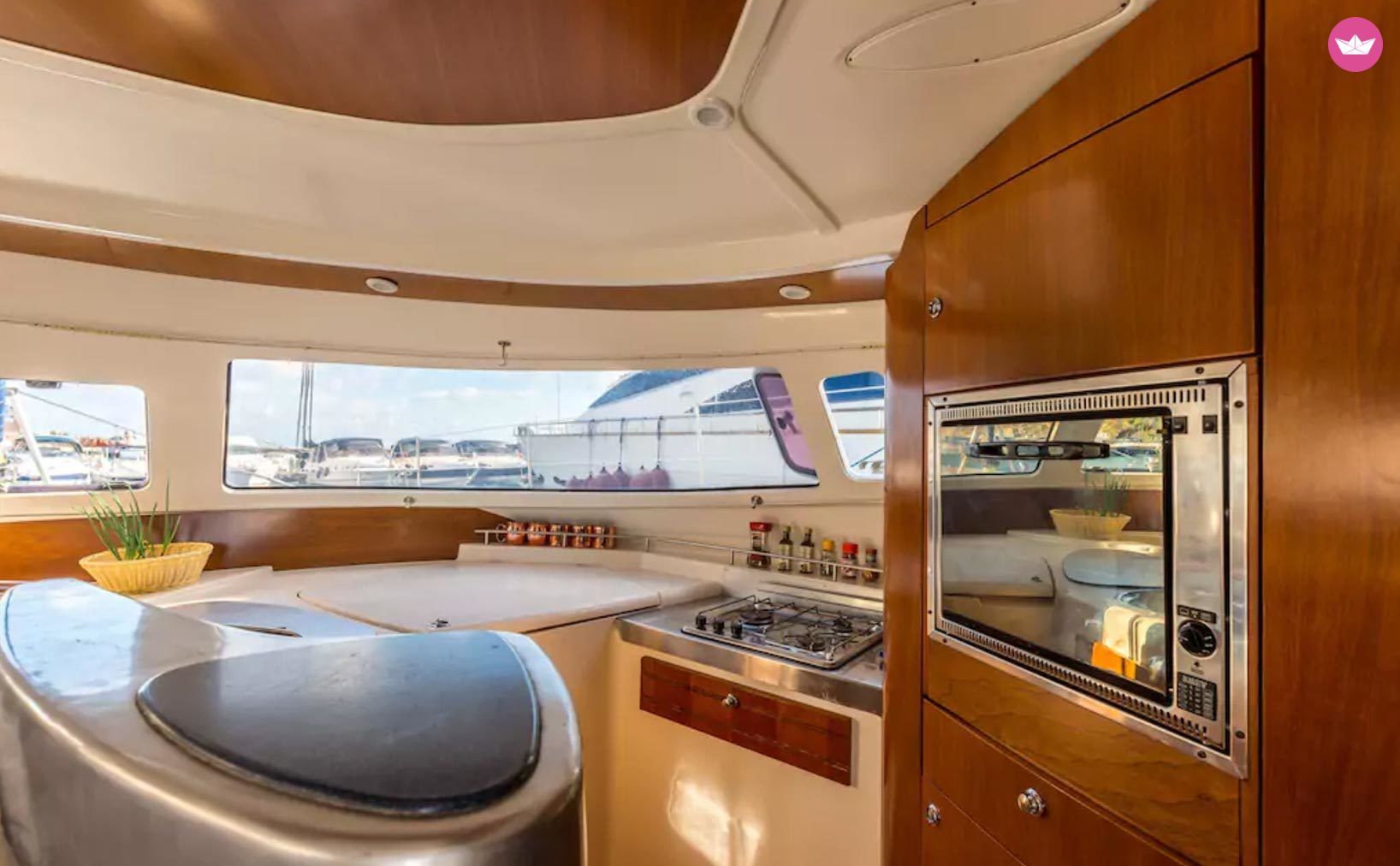 Description of Nathalie's catamaran , Noleggio questo meraviglioso catamarano completamente refittato a fine 2018 per trascorrere vacanze all'insegna del divertimento e del relax in compagnia dei vostri amici e della vostra famiglia. Questa lussuosa imbarcazione, dotata di ogni comfort, vi garantirà un'esperienza unica nella splendida cornice del golfo di Palermo e la possibilità di navigare al largo delle coste di San Vito Lo Capo e Cefalù fino a raggiungere le isole Eolie oppure le Isole Egadi. All’interno del Fountaine Pajot troverete quattro spaziose cabine dotate di letto matrimoniale con materasso in lattice e di quattro bagni elettrici privati con doccia. A completare gli spazi interni una dinette con tavolo da pranzo e divani con cuscineria ed una cucina completamente equipaggiata per cucinare deliziose pietanze locali. All' esterno troverete un ampissimo prendisole di prua ed il pozzetto con tavolo da pranzo e divanetti dove potrete rilassarvi durante tutta la navigazione. Il costo dello skipper è incluso nel prezzo. Mentre sono esclusi i costi di carburante, cambusa, eventuali porti, pulizie finali obbligatorie ( 200€ per settimana, 150€ per il weekend) e bombola (30€ a settimana) Su richiesta potrete anche usufruire di: -Tender: 150€/settimana -Hostess: 150€/giorno -Motore fuoribordo: 100€/settimana -Safety Net: 200€/settimana -Chef: 100€/giorno -Lenzuola: 40€/giorno x cabina -Sup o Wakeboard a 100€ a settimana A bordo inoltre potrete usufruire di corsi di Pilates, Stretching e Yoga a 15€ a persona. Parliamo correntemente francese, inglese e spagnolo. Scrivetemi su Catamaran Yacht Charter per avere maggiori informazioni!