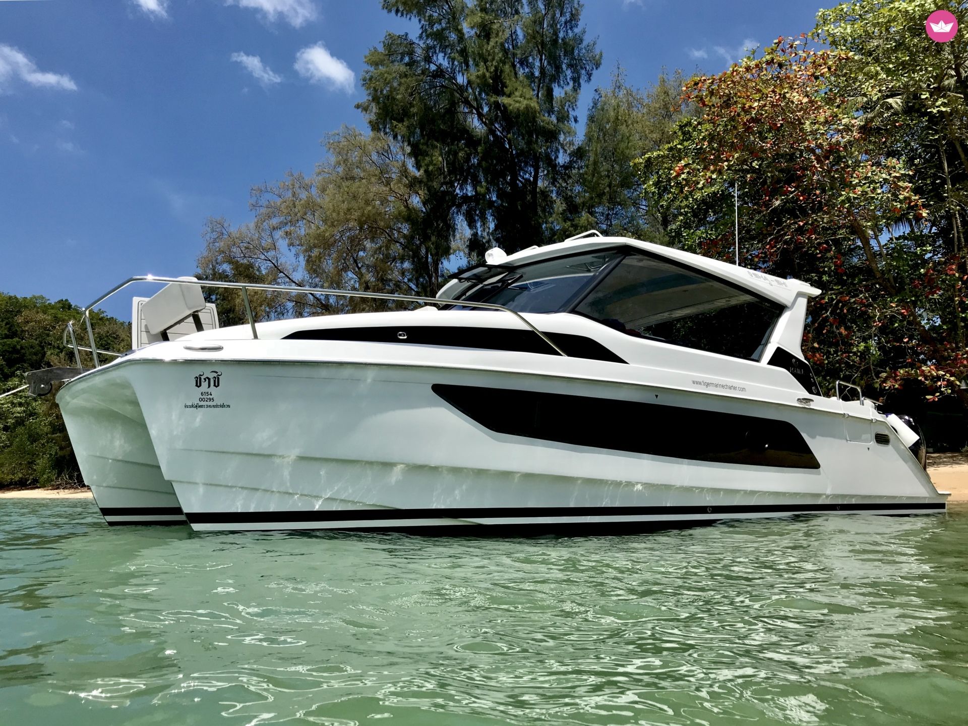 Description of Francois's catamaran Sha-Shi is a recently made Aquila 36 power catamaran that balances abundant onboard space and potentially flawless for entertaining. Presenting the amenities of a hefty yacht together with topside summer kitchen with smokeless grill, the Aquila 36 has cockpit seats for more than 12 people and two comfortable cabins with private en-suite heads. Explore Phuket like never before in this magnificent catamaran that is going to make your journey memorable> Day Cruise Prices: From 1470 EUR Full Day / 10 passengers Routes 1, 2a, 3 1470 EUR for up to up to 10 passengers Routes 4 & 5 - Phi Phi tour or Krabi island tour 2060 EUR for up to 10 passengers Included in the price for your private speedboat tour : Transfers from, and back to, your Hotel or Villa Unlimited soft drinks and chilled bottled water 6 beers per adult (capped at 60) Secret Beach Use of the Water Toys The crew of two, Captain and Engineer You may bring your own alcoholic drinks, with no corkage charge. On a Full Day Charter, we can put on a lunch, or reduce your price by 8 EUR per head and take you to a lovely Rustic Waterside Restaurant for your lunch, where you can choose what you like according to your budget. Not included in the price On a half day charter, no food is served but you may bring your own, no alcohol is provided but you may bring your own National park fees are NOT included Nor is a crew gratuity tip which is normal for you to give them at the end of the day, You will find they well deserve this, Guideline will be 27 EUR each One Island Hop Half Day Special 775 EUR for 10 passengers. To RANG YAI island ONLY You get to experience this lovely boat for just 775 EUR for 4 hours at the beautiful Rang Yai island. The floating jacuzzi, music, swimming, beautiful white sand palm-fringed beach Not included in the price: On a half day charter, no food is served but you may bring your own, no alcohol is provided but you may bring your own National park fees are NOT included Nor is a crew gratuity tip which is normal for you to give them at the end of the day, You will find they well deserve this, Guideline will be 27 EUR each
