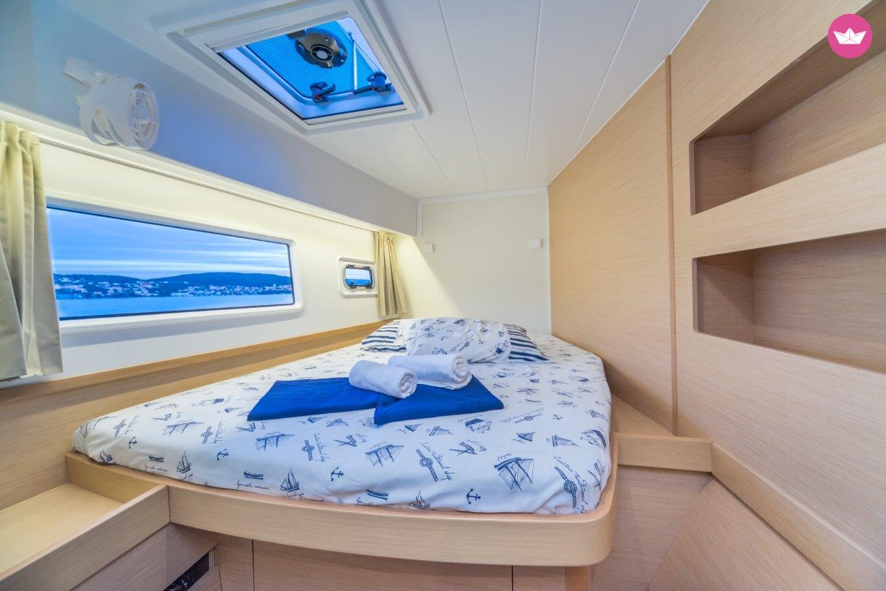 Description of Jelena's catamaran New Lagoon 42 is a spacious 12.8 meters long catamaran that is ready to be taken away on a wonderful adventure. This gorgeous boat is fully equipped with all the necessities for a perfect week of sailing. There are 4 cabins and 8+2+2 berths. Overall it can accommodate up to 12 people, but 10 would be perfect for an optimal comfort. Obligatory extras: Tourist Tax - 10 HRK/day/person Comfort package (including outboard engine) - 300EUR Optionals: Scuba diving set - 15 EUR SUP board - 150 EUR Skipper/day - 150 EUR + food Hostess/day - 130 - 150 EUR + food If you have any questions, you can contact me on the Catamaran Yacht Charter platform for more info. See you soon!