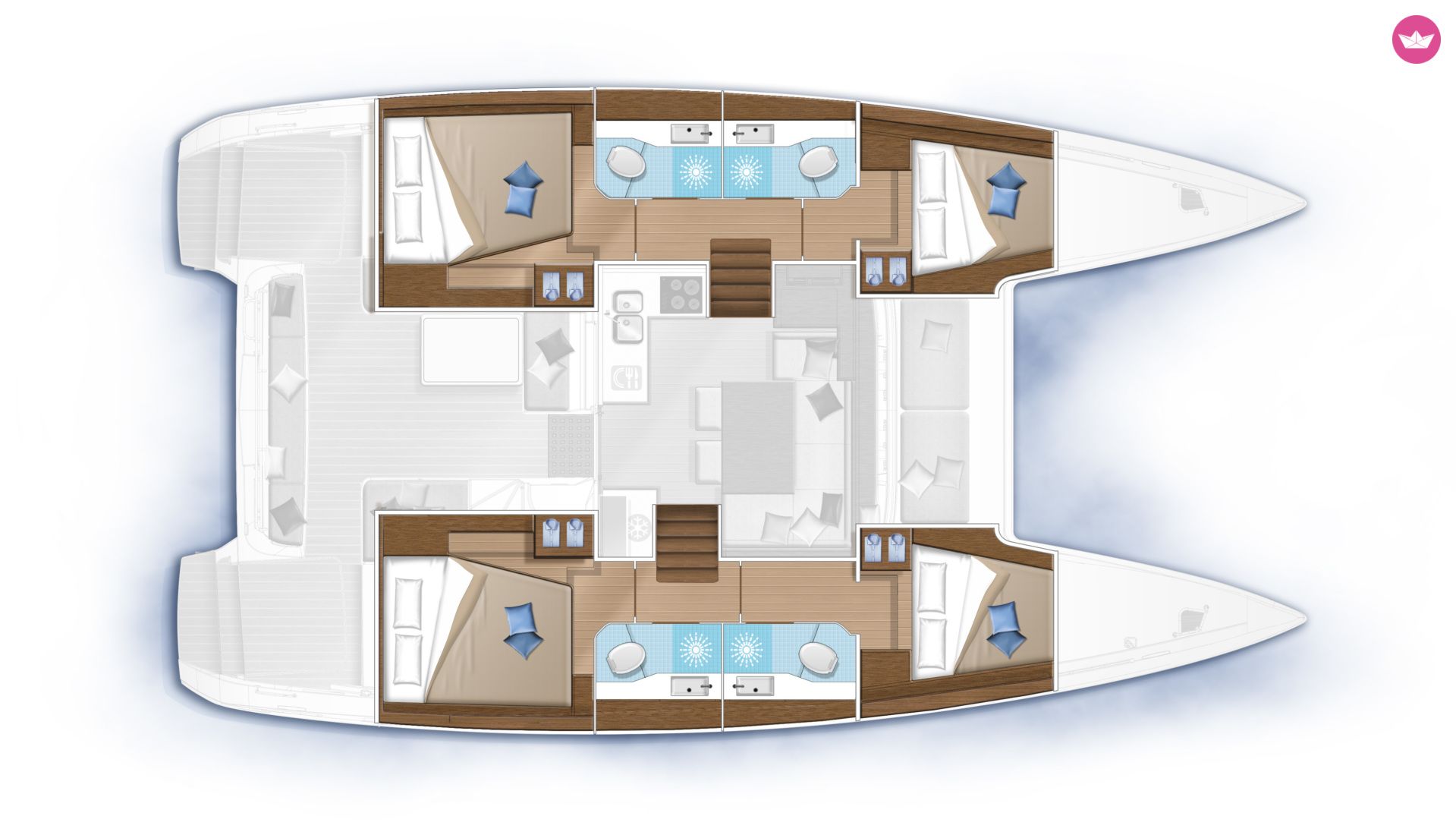 Description of Jelena's catamaran This beautiful boat was build in 2019 and it has 4 cabins and 8+2+(1+1) berths that can accommodate up to 12 people. Perfect boat for a perfect week. It is equipped with everything you need for a great stay, like GPS, bimini top, spacious saloon, modern kitchen, comfortable bedrooms, and wide bow sundeck. This lovely boat is located in Split, famous summer destination that must be seen. Split is the second largest city in Croatia. It is a vibrant port city, stunningly located between mountains and the sea. From there you have an easy access to islands like Hvar, Brač, and Šolta. That is what makes it an excellent base for exploring the wonders of this part of Croatia and an ideal starting point of your own adventure. Sail all your troubles away! Included in price: Wi-Fi, VHF, GPS, bed linen, kitchen equipment Depending on the level of your boat skills and the possession of a valid license you can decide to sail the boat yourself or to let one of our professional skippers take you on a holiday of your dreams. If you want to rent a boat as a bareboat, you should have a valid sailing license! Obligatory extras: Tourist Tax Comfort package (including outboard engine) If you have any questions, you can contact me on the Catamaran Yacht Charter platform for more info. See you soon!