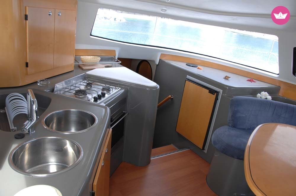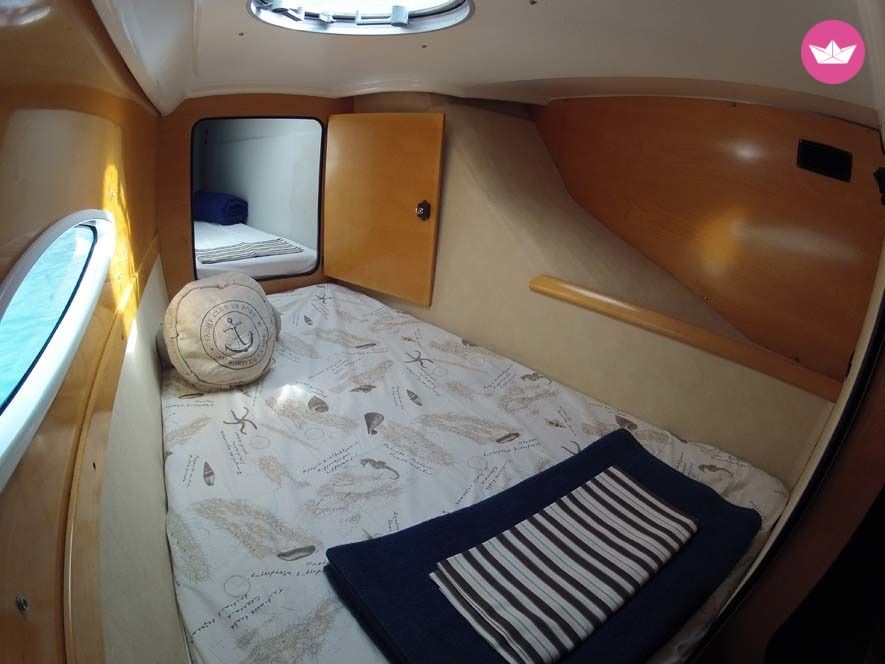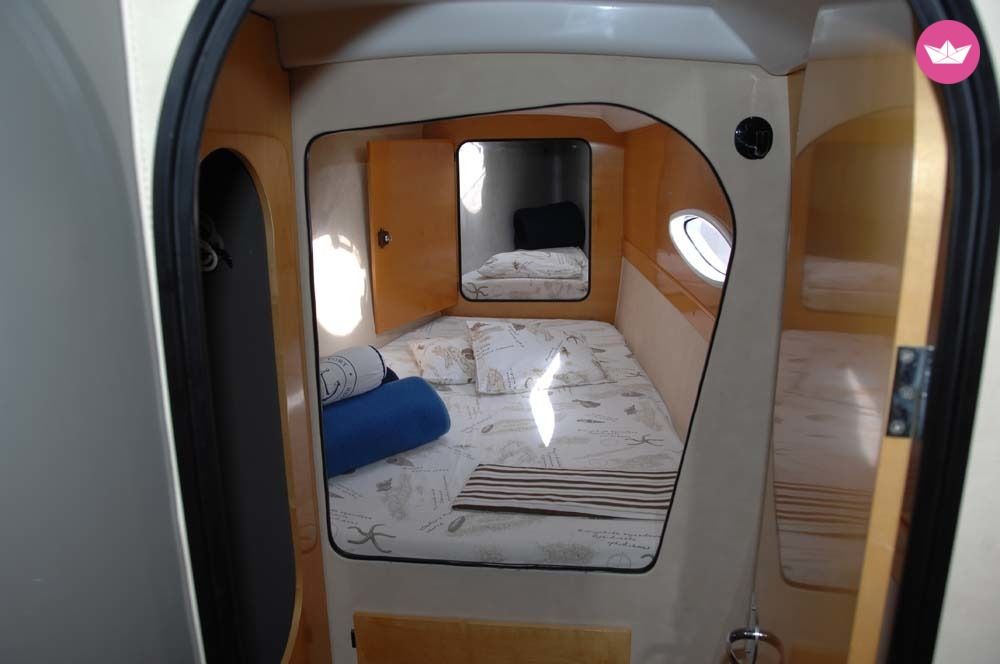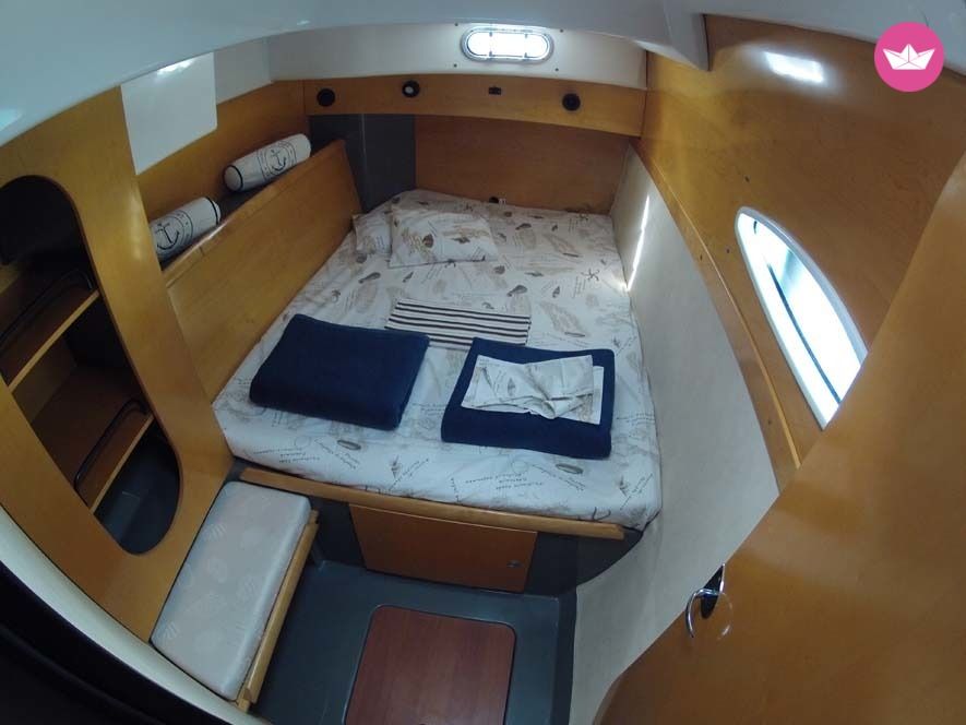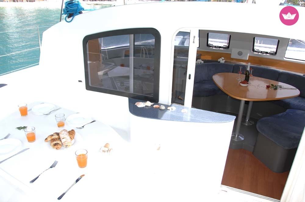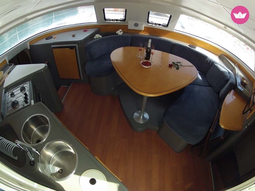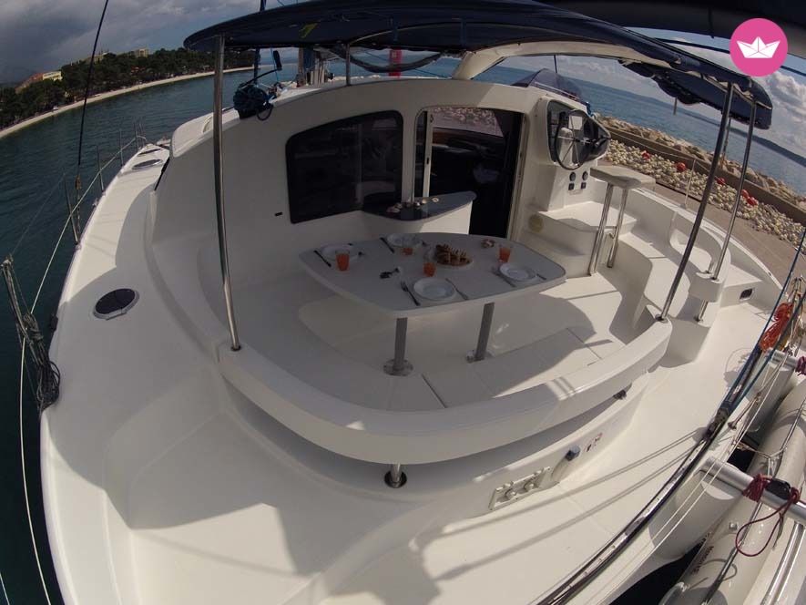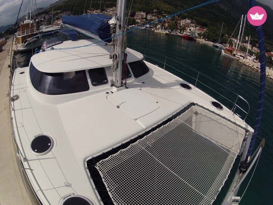 Description of Iskra's catamaran This lovely boat with a catchy name is a great choice to make. This Lavezzi40 is more than fit to sail both between the islands of the Dalmatian coast and the Adriatic in open sea. Inside you can see 4 cabins with double bed and 2 smaller ones, and 2 wc/shower areas, in addition to the kitchenette. On the outside deck you'll feel to sit at the outside table or sunbathing on the front net of the ship. You will surely enjoy to visit the magnificent city of Dubrovnik, protected by UNESCO for its rich and historical architecture. You may choose to rent my boat with or without a skipper (150 euros per day + food), with or without a hostess (130 euros per day + food), with safety nets (50 euros), with snorkeling equipment (15 euros per set), with wifi (30 euros per week), with an outboard engine (80 euros per week). Obligatory expenses include a transit log (160 euros) and a tourist tax of 1,3 euro per day per person. I hope to see you soon!