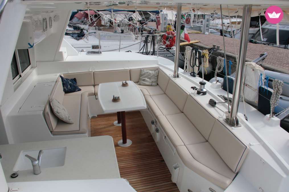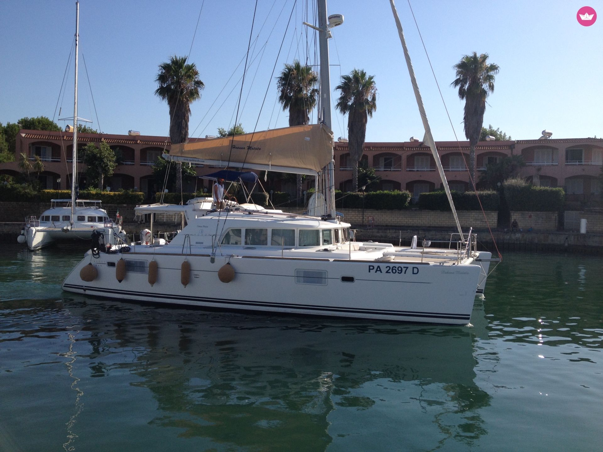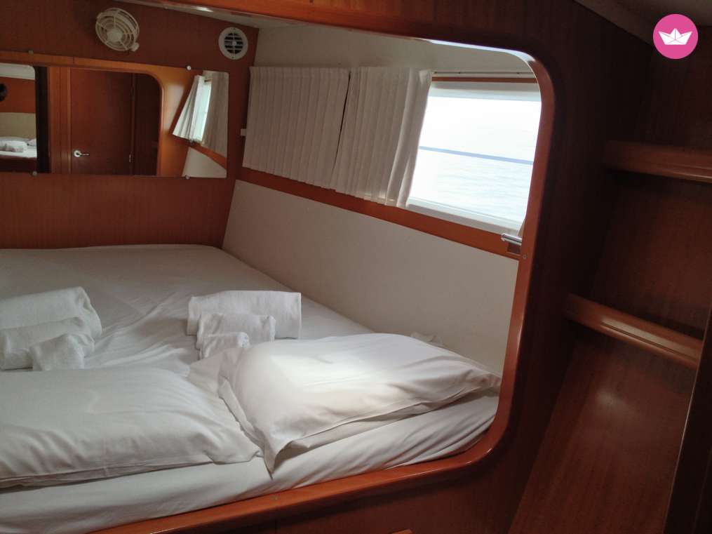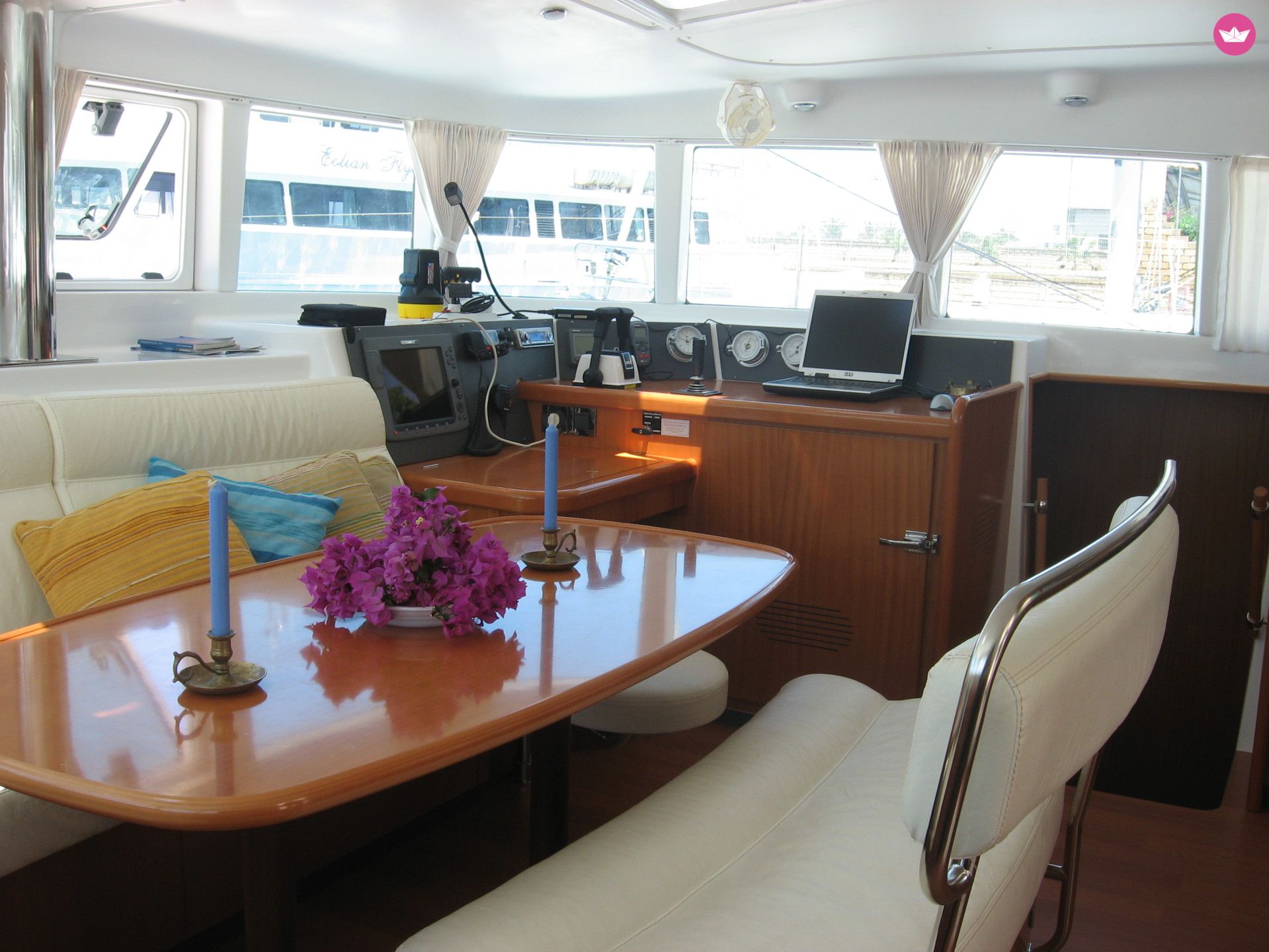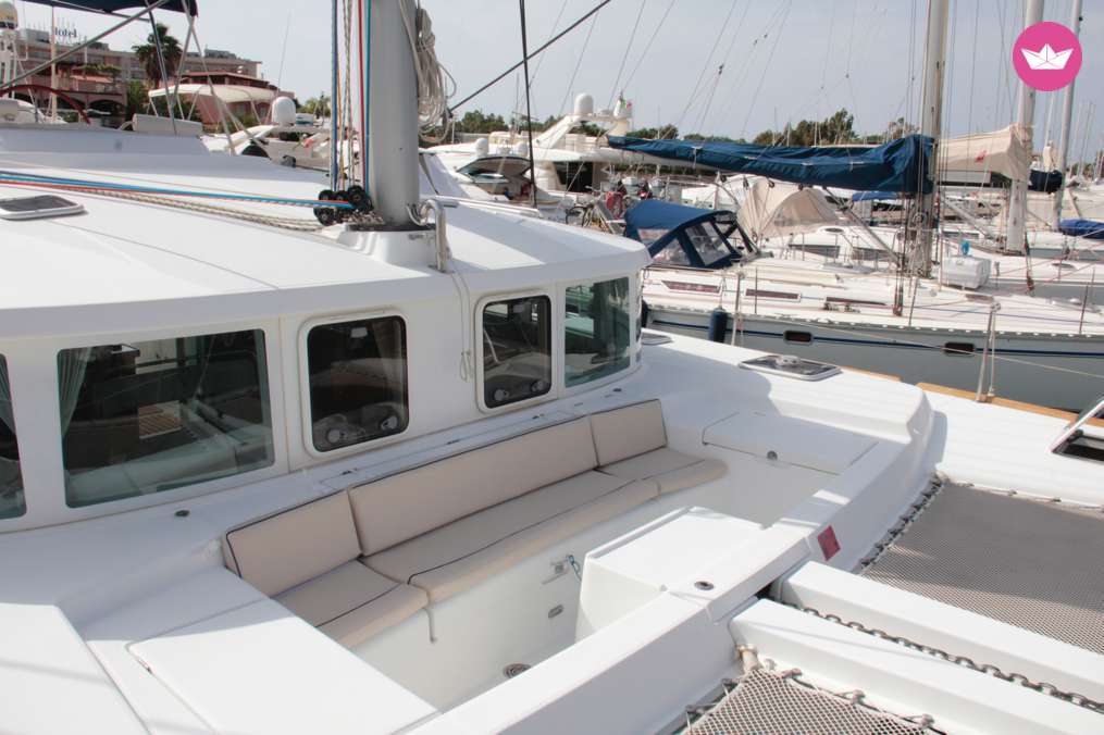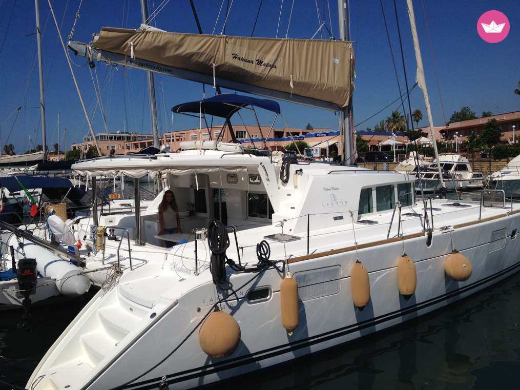 Description of PAOLO's catamaran Lagoon 440 has the latest state-of-the-art design, style and technology this cocktail resulted in a perfect catamaran for the charter and an outstanding ship for deep sea navigation. The Lagoon 440 we are offering has been launched in January 2007. This yacht, in its 4 cabin + 4 en-suite heads version with 2 more crew cabins at the bows can comfortably accommodate up to 8+1 guests and a crew of 2. She is equipped with: AIR CONDITIONING - Electric toilets - TV, DVD, Stereo, CD - Generator 220v 5KW - Watermaker 220 lt/h - Boiler - 2 fridge - 1deep freezer - 3 burner kitchen + owen + microwave - 2 deck showers - shore-power 220v - battery charger - 2 GPS chart plotter - Radar - Autopilot - Log - VHF wind instruments - double steering - Lazy jack - lazy bag - electric windlass - ancor with 110 m. chain - boarding ladder - Rib Tender - outboard 15hp - biminitop She has been always well maintained and equipped to the very highest standard of luxury, with a level of attention to detail and quality that assures you of an exceptional experience. Sailing around the Aeolian Islands is an unbeatable experience and, definitely, the most appropriate way of exploiting in full the wonders this paradise on earth, heritage of UNESCO, has to offer. An easy passage of only 17 miles from Portorosa will allow you to visit this heavenly microcosm whose deep blue water and gorgeous colors will stay forever into your mind... Summing up, Lagoon 440 is a safe, comfortable, luxurious, fast ship, a great opportunity for those who love exclusive experiences and emotions. The difference between a single hull and a multiple hull is well known, but the real difference is to live on board, sailing; when docking the catamaran is a true platform on the sea that does not head nor winds ropes, allowing everyone, even the most inexperienced ones, to wander freely from prow to stern, or climb up the panoramic bimini top without feeling seasick; the catamaran does not move from side to side, does not create situations to feel unbalanced, there are no sudden movements o turns after which everything and everyone has to be rearranged. The most adequate image is that of being able to have a suite over the sea, but located at the most beautiful and most desirable place minute after minute: a comfortable bunk bed, waking up with the first sunlight, the most amazing sea bed and isolated spot to swim and dive, docking with the prow facing the berth and the stern pointing the sunset. Going on board, one can immediately notice two external innovations, a cockpit completely free from control panels, winch, rails, gears and ropes, getting a wide space with U-shaped benches, the awning and the bimini top give a comfortable shelter from the sun and from the unusual rains, no more almost hermetic tents which must be taken away when there is a strong wind. Above the bimini top, through two ladders, one of them going from the hull, you can get to the wheel house. It's a pleasure to be able to maneuver from such a privileged observation deck! From up there you have a 360º view. But not only is it possible to watch the sea, the sea bed and floating buoys, you can also rest in the comfort of the seats that have room for more people. At the Lagoon prow there is another completely new area, a cockpit with seats just between the shaft and the nets; if while in the prow you had to lower or even sit down uncomfortably, now there is a luxurious "couch" with surfaces to put bottles and glasses, and why not plates for munchies. Interior The interior is full of light coming in through the vertical windows, their estimate height gives a 180º vision from every place, whether standing or sitting in the comfortable couches. The kitchen is just as nice as any other house kitchen, complete with all the necessary appliances. It is easy to pass drinks and dishes around due to a sliding window which also makes it possible for everyone to see the chef and discover his secrets. The course plotting table, usually "neglected" to strange corners, is located here in the middle of the room, just in front of the windows, a strategic observation site to watch the surrounding sea. Downstairs, to the right and to the left there are four cabins with their corresponding bathroom. Here, we would like to say a few words for those who haven't had the chance to experience life on board a catamaran yet. Double beds have the same size as those you have at home; everyone knows how important it is not to be sweaty sleeping in a summer sea environment. Each bathroom has a shower with cold and hot water, and are very spacious so you can feel comfortable in them.
