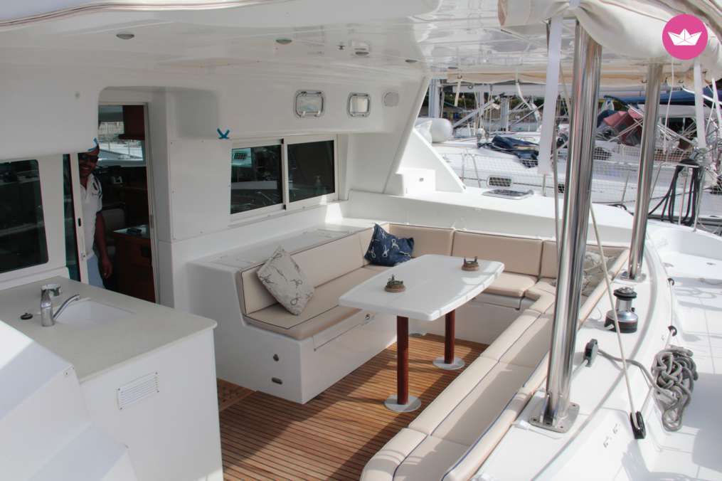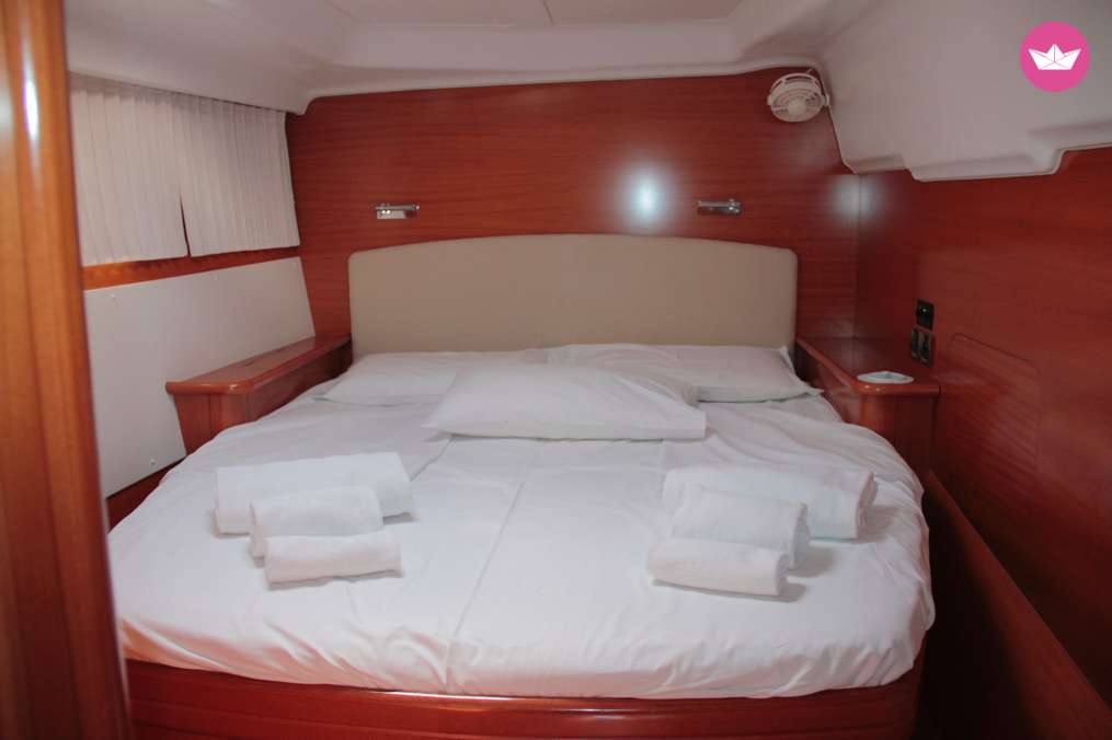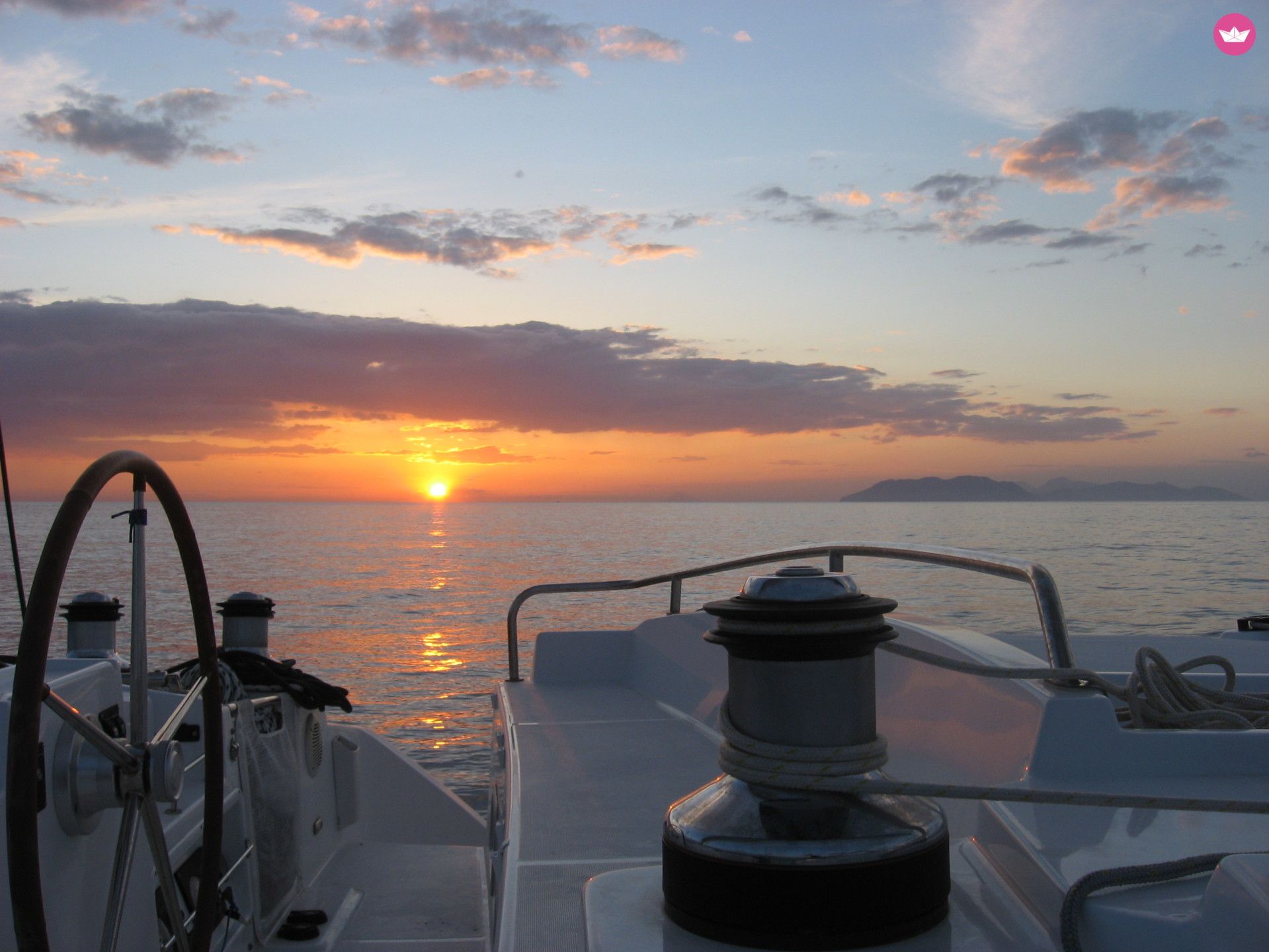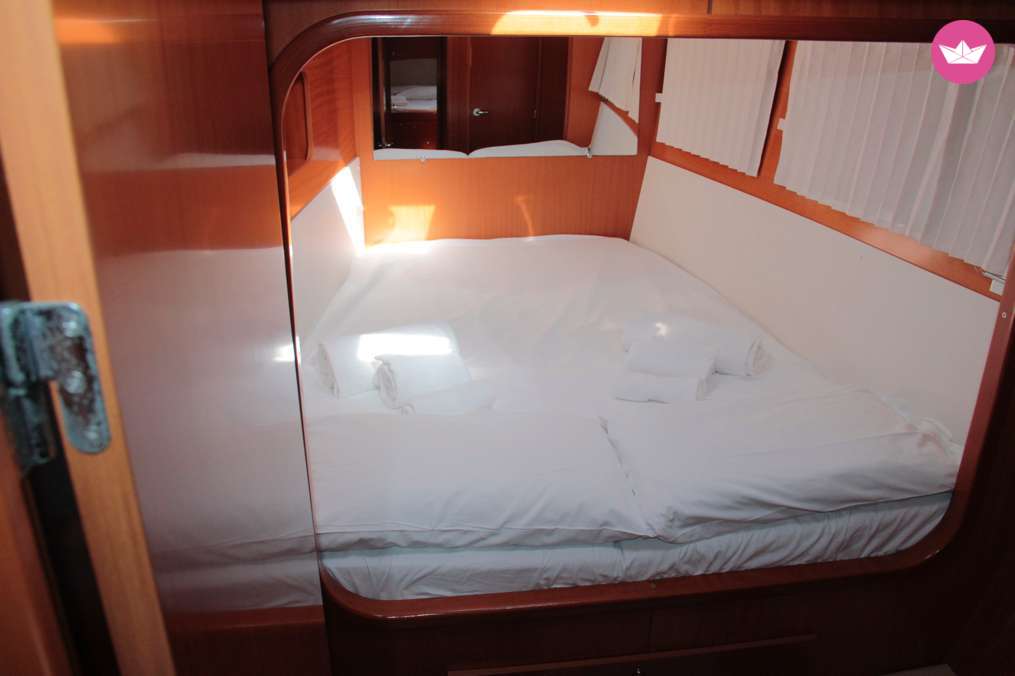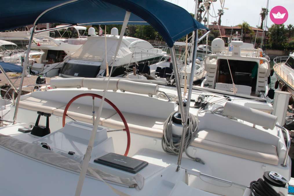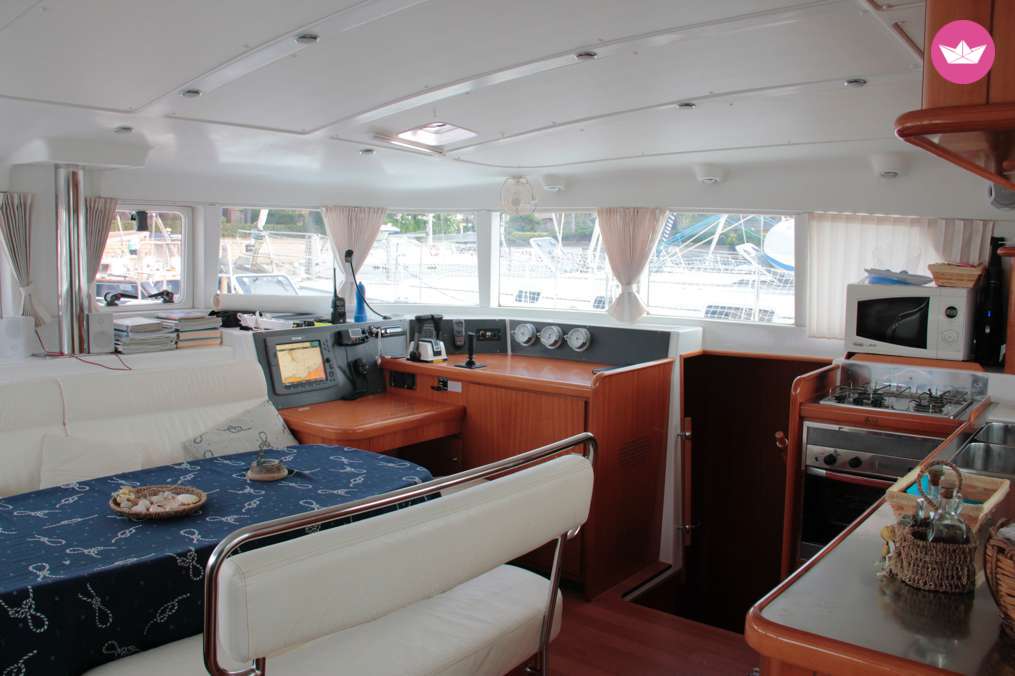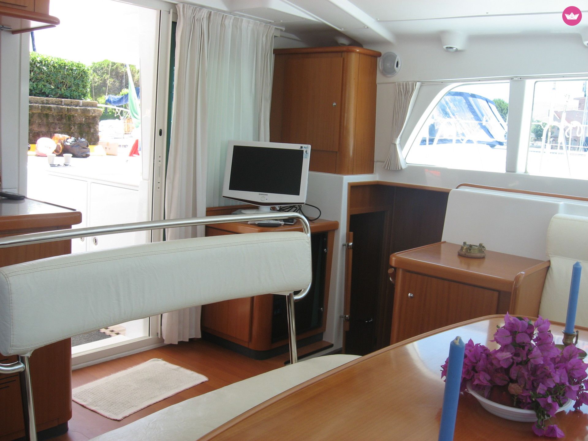 Description of PAOLO's catamaran Lagoon 440 has the latest state-of-the-art design, style and technology this cocktail resulted in a perfect catamaran for the charter and an outstanding ship for deep sea navigation. The Lagoon 440 we are offering has been launched in January 2007. This yacht, in its 4 cabin + 4 en-suite heads version with 2 more crew cabins at the bows can comfortably accommodate up to 8+1 guests and a crew of 2. She is equipped with: AIR CONDITIONING - Electric toilets - TV, DVD, Stereo, CD - Generator 220v 5KW - Watermaker 220 lt/h - Boiler - 2 fridge - 1deep freezer - 3 burner kitchen + owen + microwave - 2 deck showers - shore-power 220v - battery charger - 2 GPS chart plotter - Radar - Autopilot - Log - VHF wind instruments - double steering - Lazy jack - lazy bag - electric windlass - ancor with 110 m. chain - boarding ladder - Rib Tender - outboard 15hp - biminitop She has been always well maintained and equipped to the very highest standard of luxury, with a level of attention to detail and quality that assures you of an exceptional experience. Sailing around the Aeolian Islands is an unbeatable experience and, definitely, the most appropriate way of exploiting in full the wonders this paradise on earth, heritage of UNESCO, has to offer. An easy passage of only 17 miles from Portorosa will allow you to visit this heavenly microcosm whose deep blue water and gorgeous colors will stay forever into your mind... Summing up, Lagoon 440 is a safe, comfortable, luxurious, fast ship, a great opportunity for those who love exclusive experiences and emotions. The difference between a single hull and a multiple hull is well known, but the real difference is to live on board, sailing; when docking the catamaran is a true platform on the sea that does not head nor winds ropes, allowing everyone, even the most inexperienced ones, to wander freely from prow to stern, or climb up the panoramic bimini top without feeling seasick; the catamaran does not move from side to side, does not create situations to feel unbalanced, there are no sudden movements o turns after which everything and everyone has to be rearranged. The most adequate image is that of being able to have a suite over the sea, but located at the most beautiful and most desirable place minute after minute: a comfortable bunk bed, waking up with the first sunlight, the most amazing sea bed and isolated spot to swim and dive, docking with the prow facing the berth and the stern pointing the sunset. Going on board, one can immediately notice two external innovations, a cockpit completely free from control panels, winch, rails, gears and ropes, getting a wide space with U-shaped benches, the awning and the bimini top give a comfortable shelter from the sun and from the unusual rains, no more almost hermetic tents which must be taken away when there is a strong wind. Above the bimini top, through two ladders, one of them going from the hull, you can get to the wheel house. It's a pleasure to be able to maneuver from such a privileged observation deck! From up there you have a 360º view. But not only is it possible to watch the sea, the sea bed and floating buoys, you can also rest in the comfort of the seats that have room for more people. At the Lagoon prow there is another completely new area, a cockpit with seats just between the shaft and the nets; if while in the prow you had to lower or even sit down uncomfortably, now there is a luxurious "couch" with surfaces to put bottles and glasses, and why not plates for munchies. Interior The interior is full of light coming in through the vertical windows, their estimate height gives a 180º vision from every place, whether standing or sitting in the comfortable couches. The kitchen is just as nice as any other house kitchen, complete with all the necessary appliances. It is easy to pass drinks and dishes around due to a sliding window which also makes it possible for everyone to see the chef and discover his secrets. The course plotting table, usually "neglected" to strange corners, is located here in the middle of the room, just in front of the windows, a strategic observation site to watch the surrounding sea. Downstairs, to the right and to the left there are four cabins with their corresponding bathroom. Here, we would like to say a few words for those who haven't had the chance to experience life on board a catamaran yet. Double beds have the same size as those you have at home; everyone knows how important it is not to be sweaty sleeping in a summer sea environment. Each bathroom has a shower with cold and hot water, and are very spacious so you can feel comfortable in them.