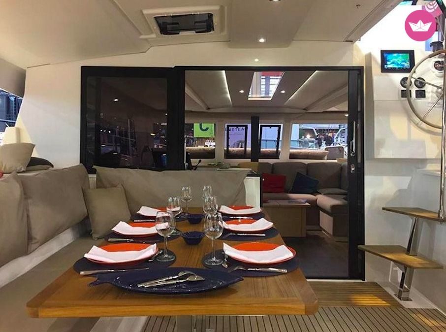 Description of Nicolas's catamaran Hello, Come and spend a relaxing day in the LERINS islands in turquoise water and beautiful spots... On board our luxury catamaran . The indicated price is up to 8 people. SKIPPER INCLUDED Beyond 8 people, there is an extra 75 € / person up to 15 maximum. Excluding final cleaning fee € 32 and € 47 fuel oil. All extras are to be paid directly on board with the skipper on the day of your rental. Departure 10: am Return 5: pm (beyond 5:pm, the extra hour will be charged 110 €/h) We suggest you spend a dream day aboard this Lucia 40 for the day. The boat is fully equipped, you can enjoy all the space available on the deck, sunbathing areas front and rear to enjoy the great climate of the region. We offer you masks and snorkels for you to explore the magnificent seabed of the region, the fauna and flora of Sainte Marguerite Island and Sainte Honorat Island is breathtaking. You can swim, do a little sport with a paddle, or enjoy the sun and spaces aboard the boat to spend an unforgettable day. For your meals: Regarding the meals if you wish to take your meals on board, it is of course possible: - we have a catering service that can meet all your needs. - Or you can choose to take your food and drinks with you. -Is lunch at the restaurant on the islands. We remain at your disposal for any further information to help you in your organization. This is our job. If you are interested in this day cruise off Cannes, contact us via Catamaran Yacht Charter messaging, we will get back to you as soon as possible. ** For any other destination outside the Cannes area, an estimate will be drawn up. See you soon ! Nicolas