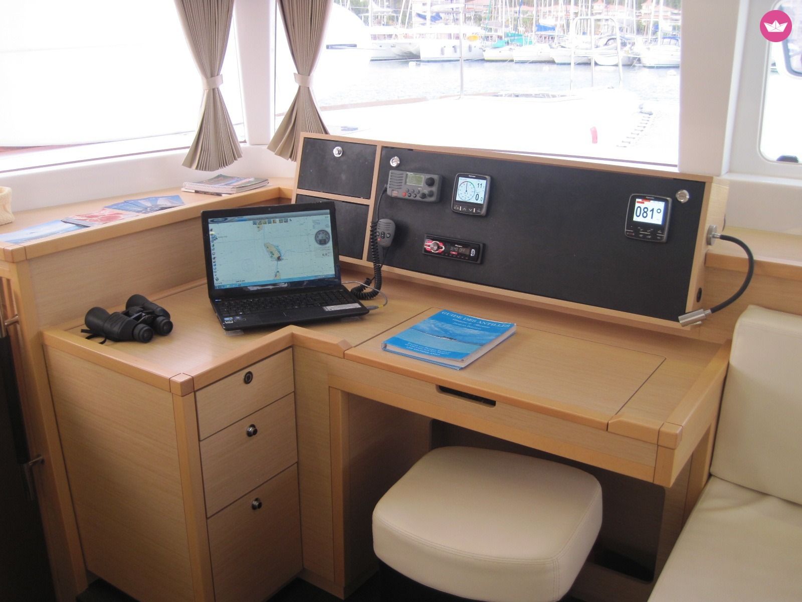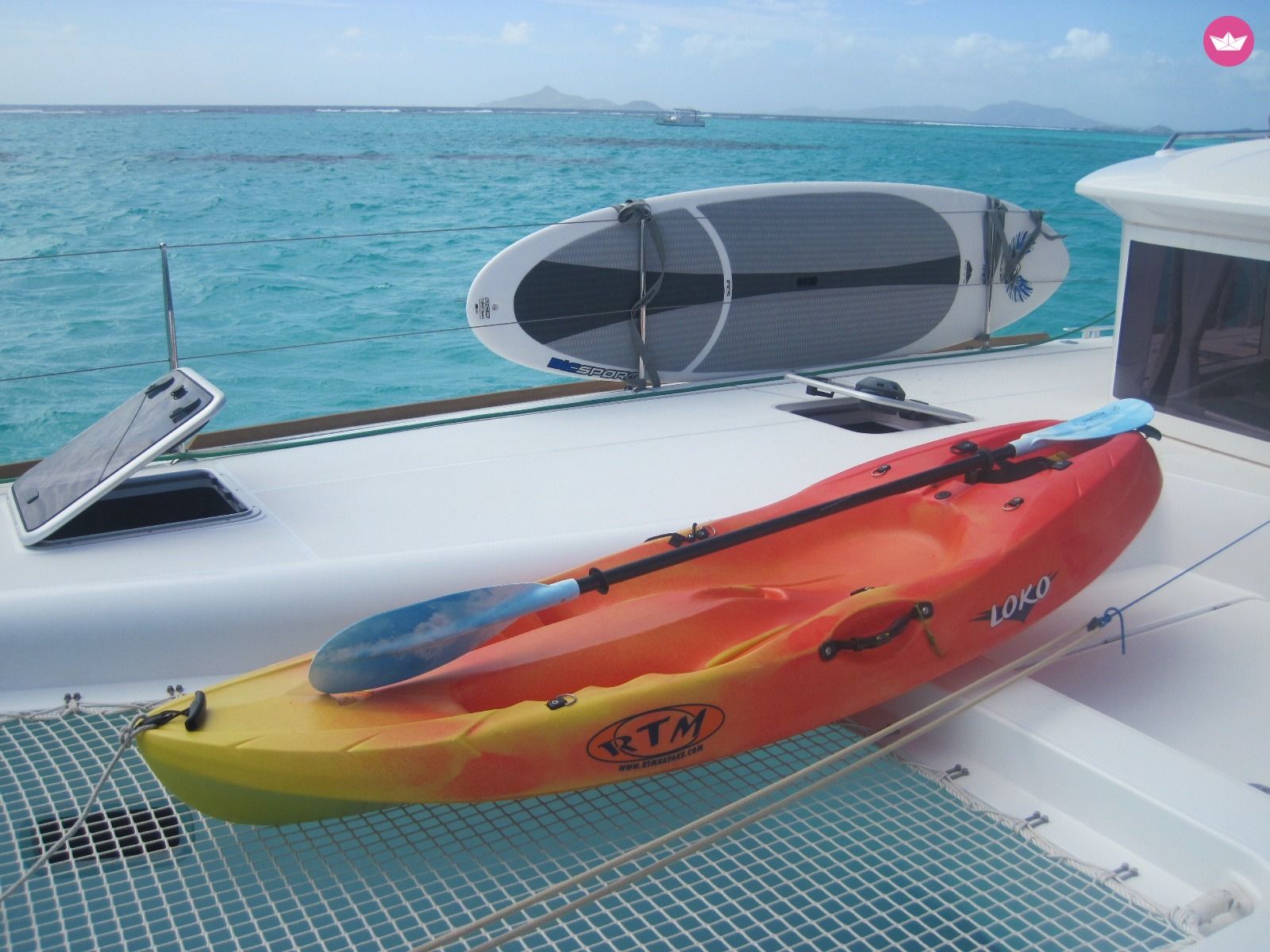 Description of Jacky's catamaran , Ce catamaran Lagoon 450 sera parfait pour votre navigation aux Antilles, au départ du Marin ! Il pourra accueillir confortablement jusqu'à 10 personnes avec ses 4 cabines et ses deux couchettes simples à l'avant du bateau. Proposé avec capitaine, ce catamaran est tout équipé pour la navigation et votre confort ! Croisières pour une ou plusieurs semaines, en one-way direction les Îles Vierges ou Saint Vincent, la Guadeloupe ... Je reste à votre disposition pour échanger sur votre projet grâce à la messagerie Catamaran Yacht Charter afin de le rendre unique ! A bientôt ! Non compris : taxes douanes et mouillages, eau, carburant, nourriture et boissons, transfert aéroport. Forfait nettoyage en sus hors commissionnement : 100€ OPTIONS (hors commissionnement): Skipper : 180€/jour Hôtesse : 130€/jour Kayak et paddle board : 15€/jour Planche à voile : selon modèle One way : selon distance Formule « all inclusive » comprenant : nourriture et boissons, taxes douanes et mouillages, carburant, eau : sur devis