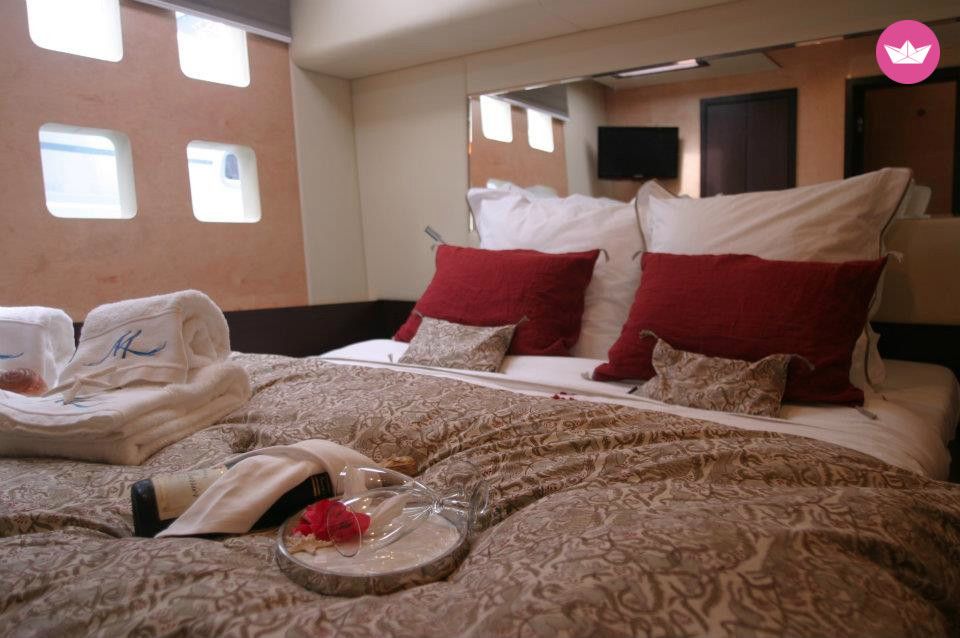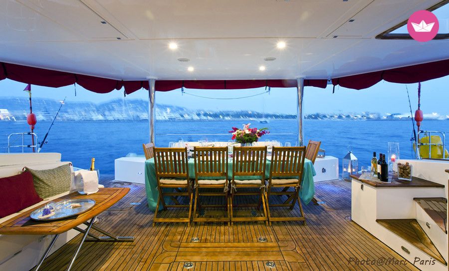 Description of Alex's catamaran , Bonjour, Nous vous proposons à la location ce superbe catamaran Sunreef 70 de 20,92 mètres de long disponible à Saint-Mandrier! Ce dernier peut accueillir jusqu'à 10 invités dans 5 cabines se présentant de la manière suivante: 5 cabines doubles dont deux sont convertibles en lits simples. Vous aurez à votre disposition une annexe Carib 5,4 mètres, un barbecue, l'air conditionné, internet dans chacune des cabines ainsi qu'une télévision dans chaque cabine. Ce catamaran rentre dans la catégorie des catamarans de luxe et vous promet la plus agréable des croisières! De notre base de St Mandrier (marina de Port Pin Rolland), situé à l’Ouest de la Côte d’Azur, vous suivrez les anciennes routes des navires de commerce, de Marseille à Saint-Tropez, en passant par les Iles d’Or (en face d’Hyères), et les calanques. Vous y trouverez des plages superbes, une flore exceptionnelle, et une vie sous-marine protégée. Les locations sont uniquement à la semaine! Il faudra prévoir en supplément les APA pour un montant de 6 800€. Pour de plus amples informations, n'hésitez pas à nous contacter via la messagerie de Catamaran Yacht Charter! Cordialement.